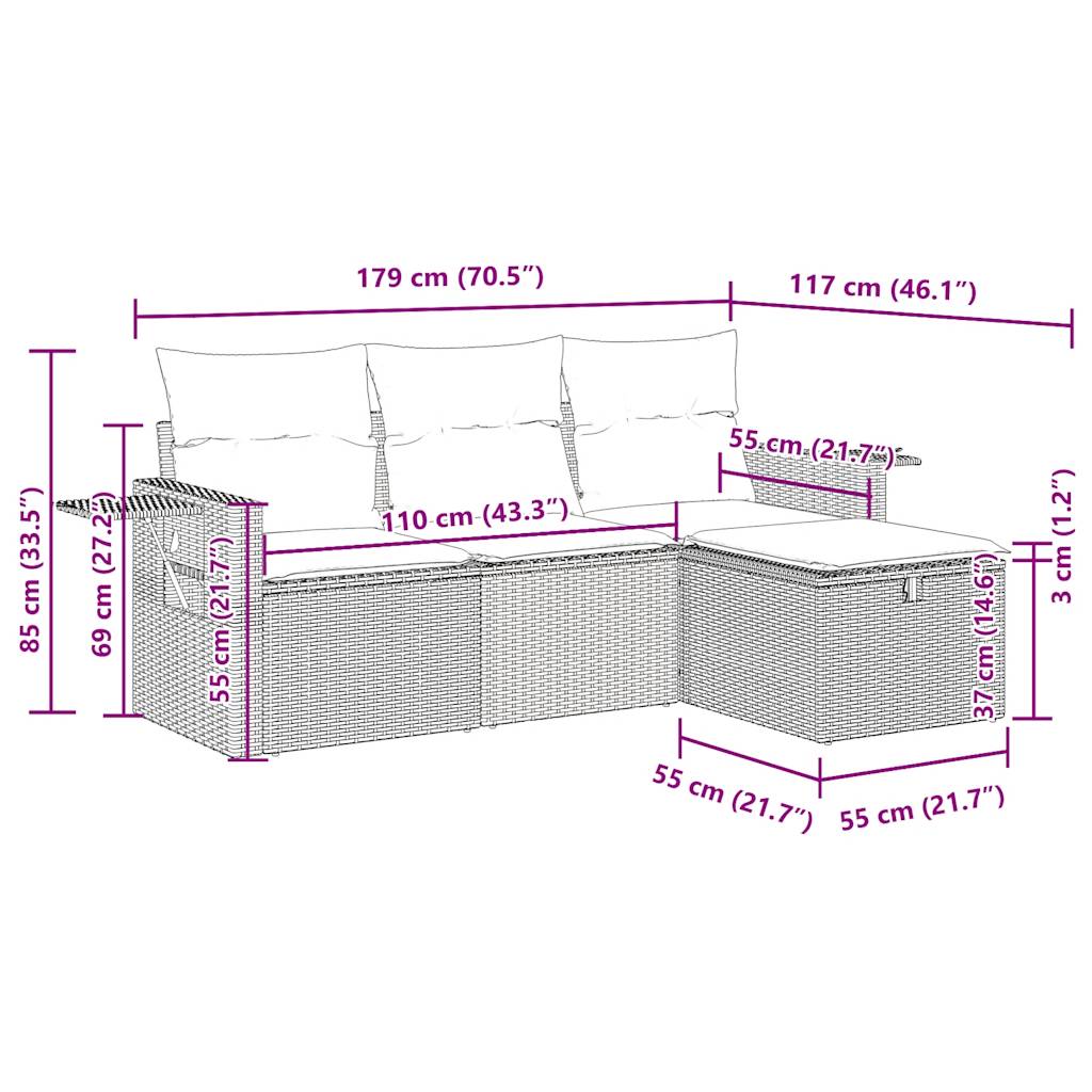 Deze loungeset is de perfecte aanvulling op je tuin of terras en biedt een comfortabele en uitnodigende ruimte om met familie en vrienden te kletsen of gewoon buiten te ontspannen en te genieten.