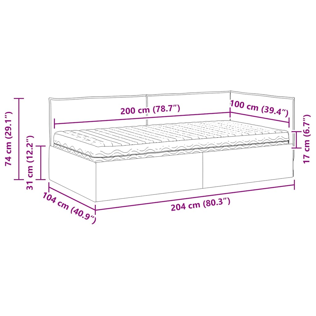 - 1 x Hoekbedframe: 204 x 94 x 74 cm (LxBxH)