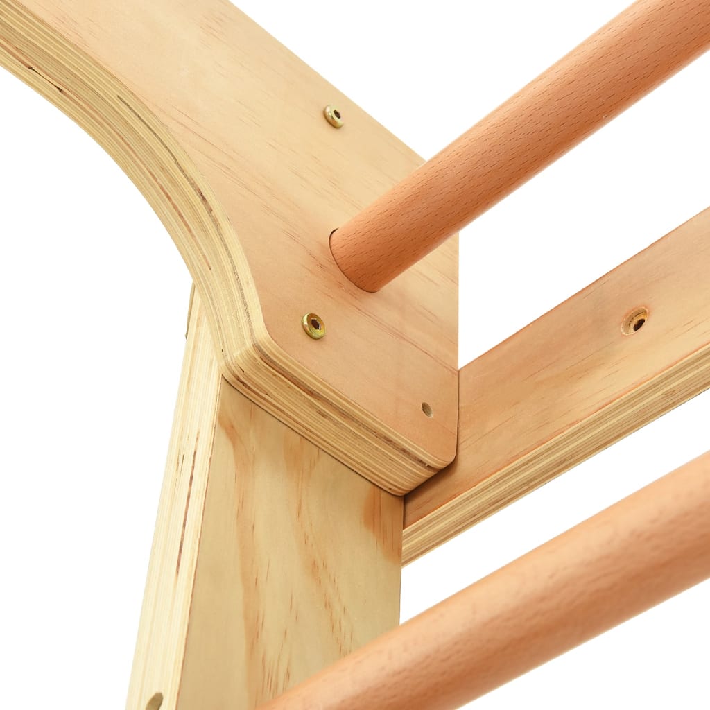 Je wordt verliefd op de vele speelfuncties, zoals: houten ladder, touwladder, klimtouw en turnringen. Dankzij het compacte ontwerp neemt de binnenspeeltuin niet veel ruimte in beslag, maar biedt hij wel voldoende ruimte voor voldoende lichamelijke beweging, actief spel of gewoon plezier met vrienden. De klimset is gemaakt van stevig rubberwood en multiplex en wordt geleverd met hoogwaardige fittingen voor maximale veiligheid en duurzaamheid.