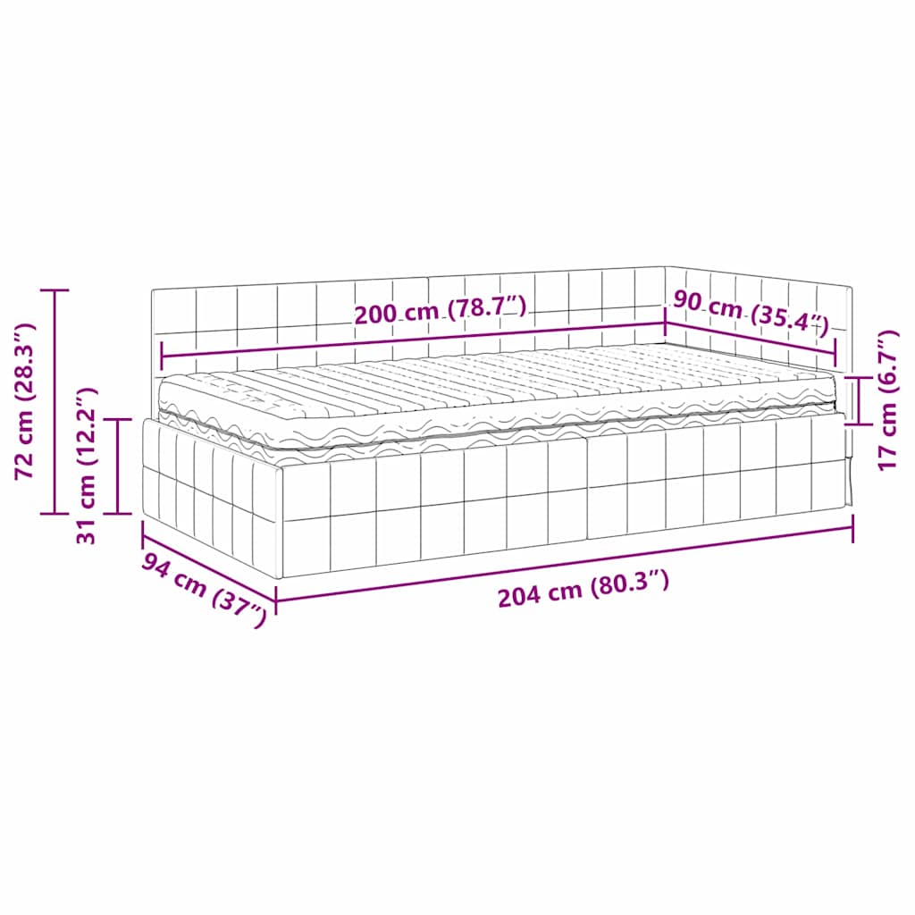 - 1 x Hoekbedframe: 204 x 94 x 72cm (LxBxH)