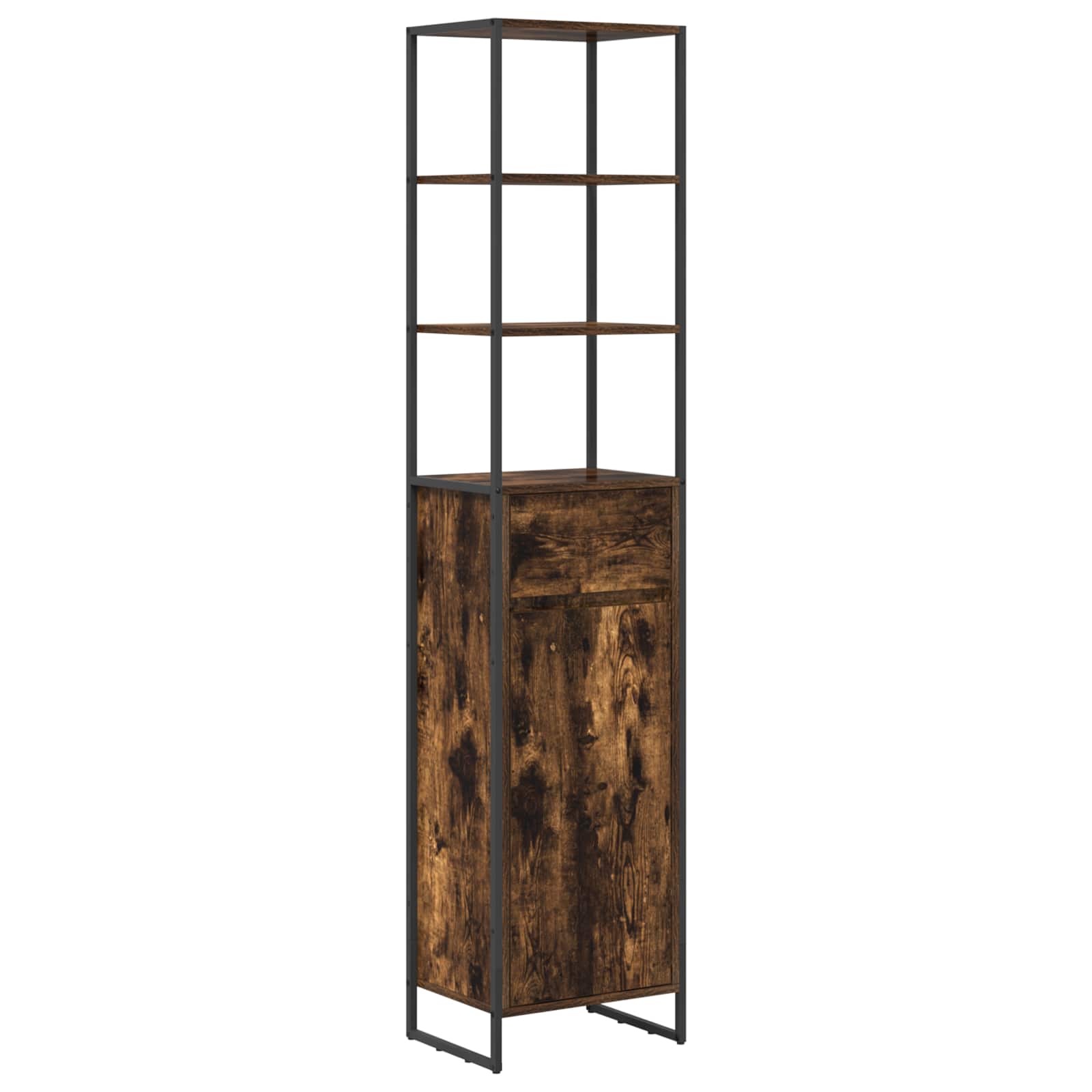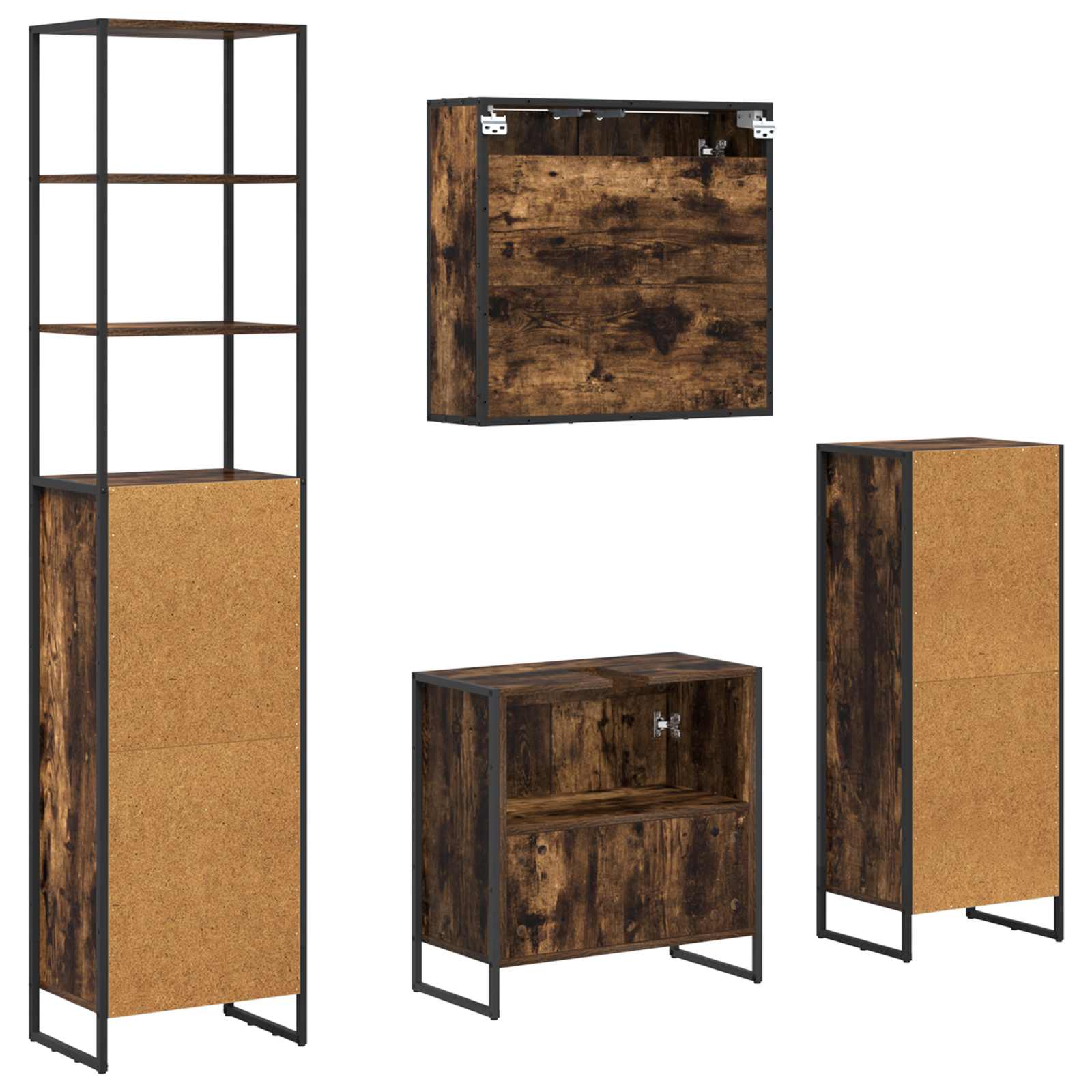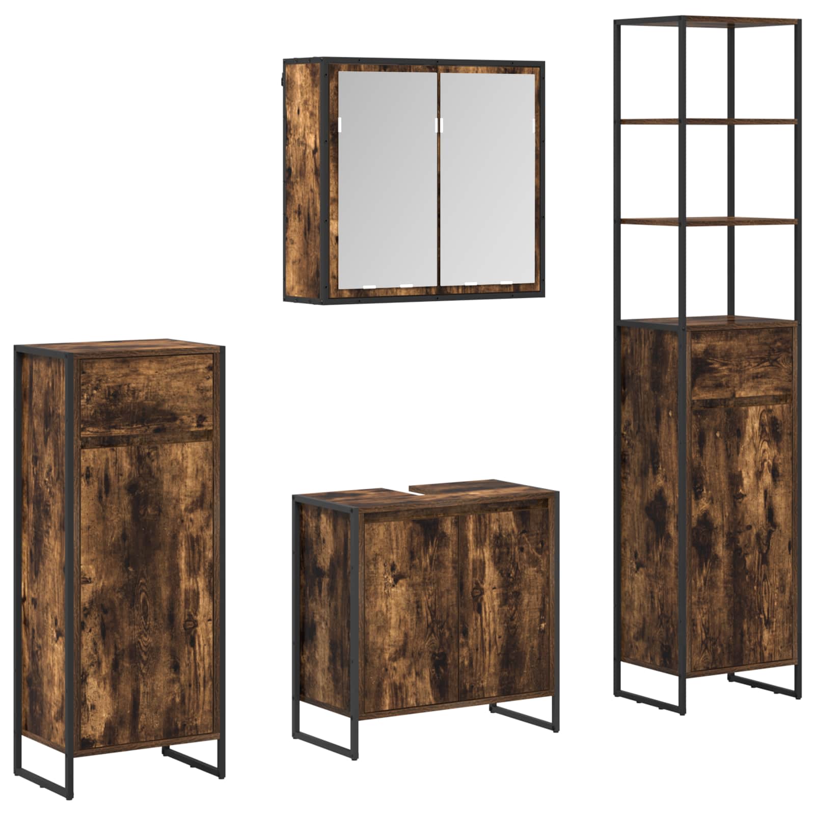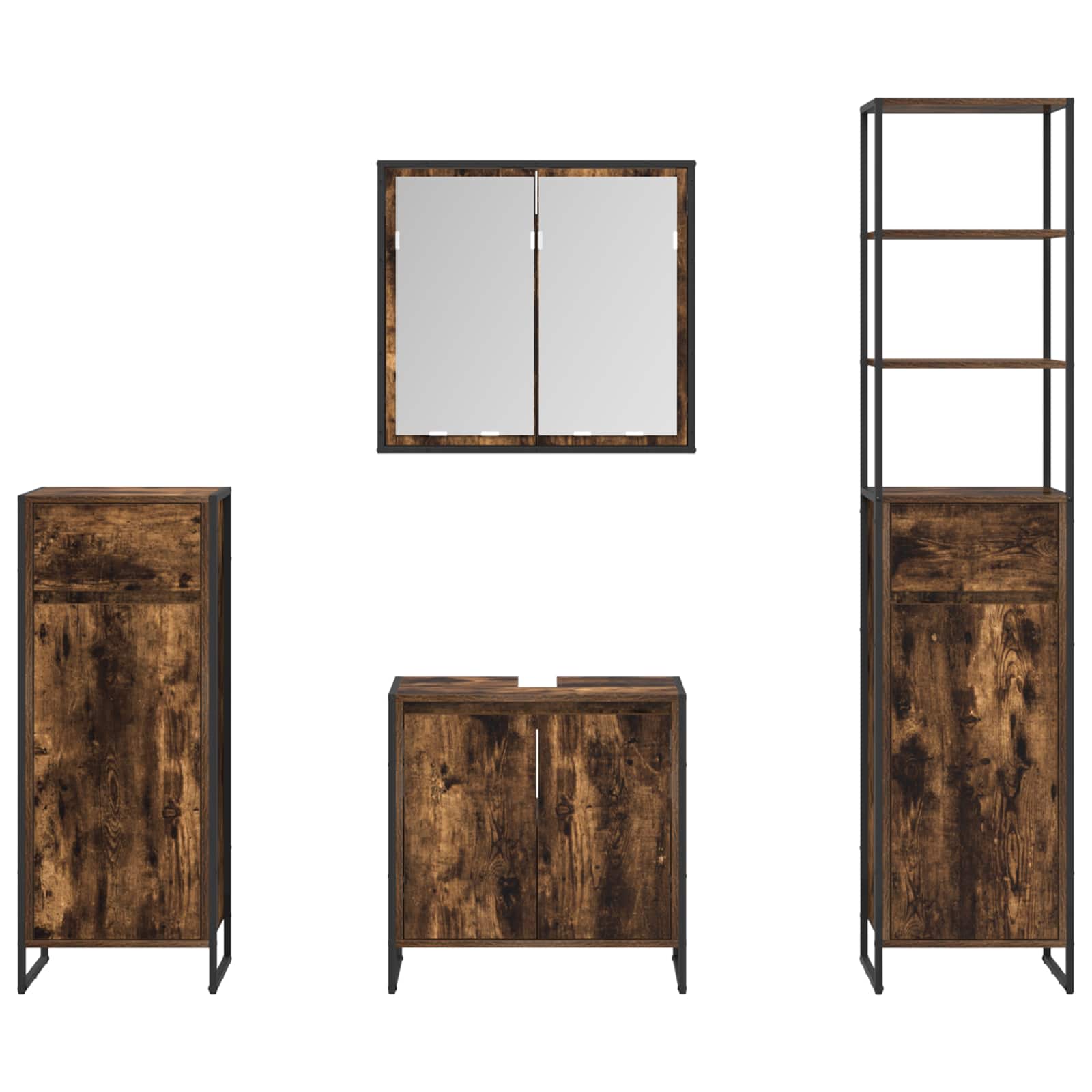 Deze badkamermeubelset straalt moderne elegantie uit en koppelt stijl aan functie. Ideaal voor stadswoningen biedt het een slimme opbergoplossing afgestemd op hedendaagse behoeften, met een mooi, strak ontwerp. De combinatie van technisch hout en staal zorgt voor sterke en praktische meubels die mooi staan in elke badkamer.