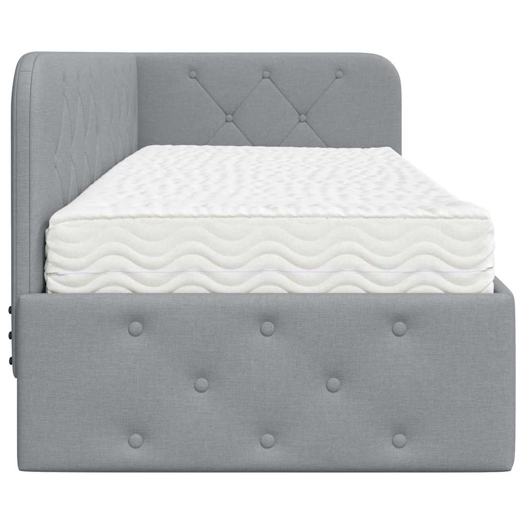 Dit stoffen hoekbedframe heeft een modern design en past perfect in de hoek van je slaapkamer, waardoor je ruimte bespaart en een unieke look toevoegt. Je kunt het gebruiken als een gezellig dagbed of een comfortabel bed. Het rechthoekige frame heeft een strakke uitstraling, ideaal voor stadsappartementen of minimalistische kamers. Dit bedframe combineert stijl en functie, perfect voor iedereen die zijn slaapkamer optimaal wil benutten.