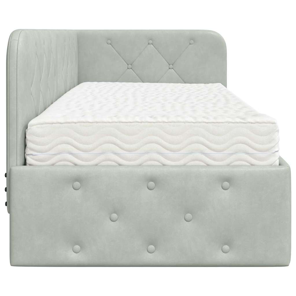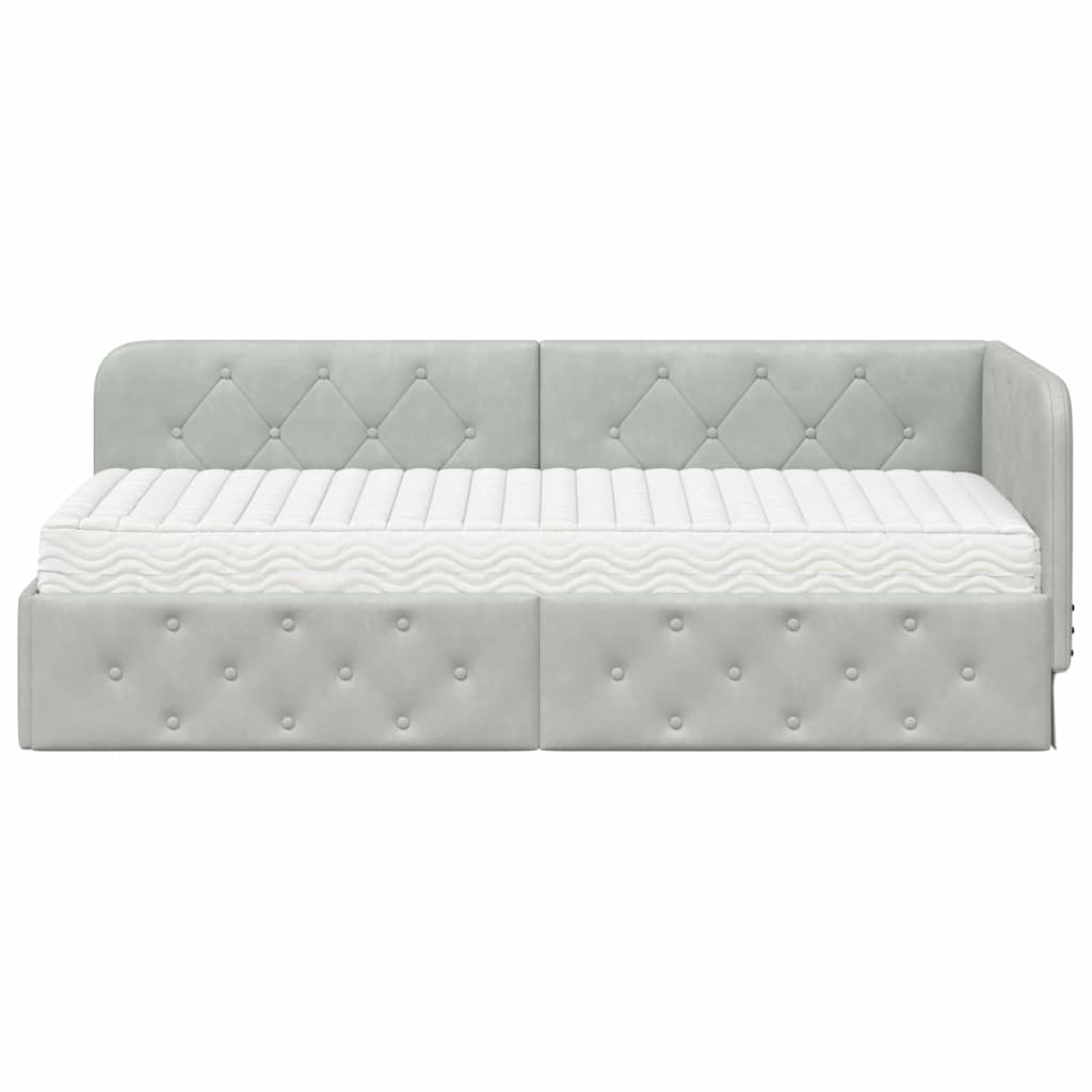 Dit moderne Hoek Bedframe voegt functionaliteit en stijl toe aan elke slaapkamer. Met zijn chique L-vorm en stevige multiplex frame, is het bed bekleed met zachte fluwelen stof. Geschikt voor zowel singles als gezinnen, dit frame kan dienen als zowel bank als bed. De combinatie van elegantie en multifunctionaliteit maakt het een perfecte aanvulling voor elke moderne kamer, wat zorgt voor meer comfort en stijl.