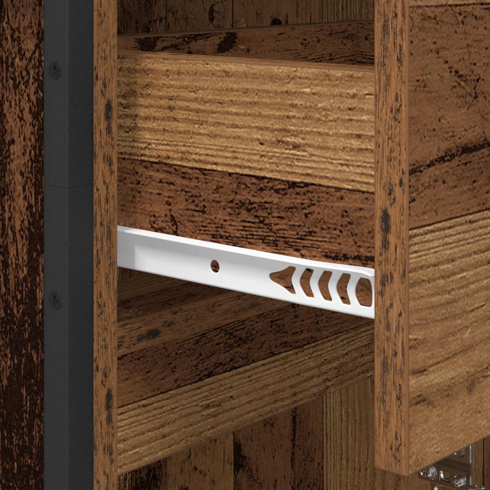Deze badkamermeubelset straalt moderne elegantie uit en koppelt stijl aan functie. Ideaal voor stadswoningen biedt het een slimme opbergoplossing afgestemd op hedendaagse behoeften, met een mooi, strak ontwerp. De combinatie van technisch hout en staal zorgt voor sterke en praktische meubels die mooi staan in elke badkamer.