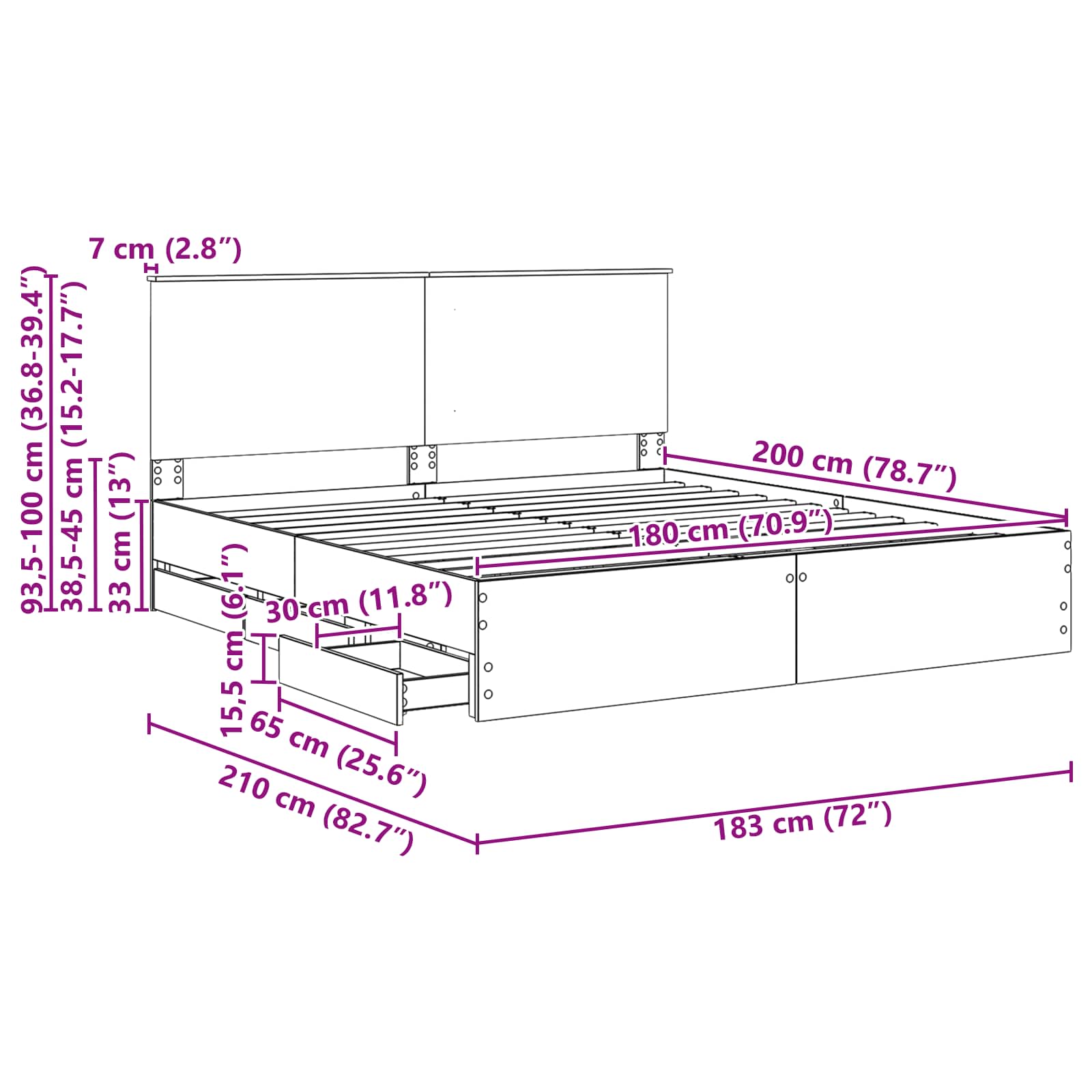 - Hoofdeinde maat: 183 x 7 x 100 cm (B x D x H)