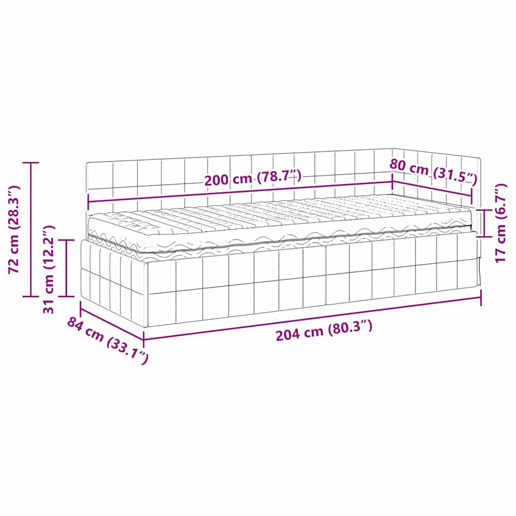 - 1 x Matras: 200 x 80 x 17 cm (LxBxH)
