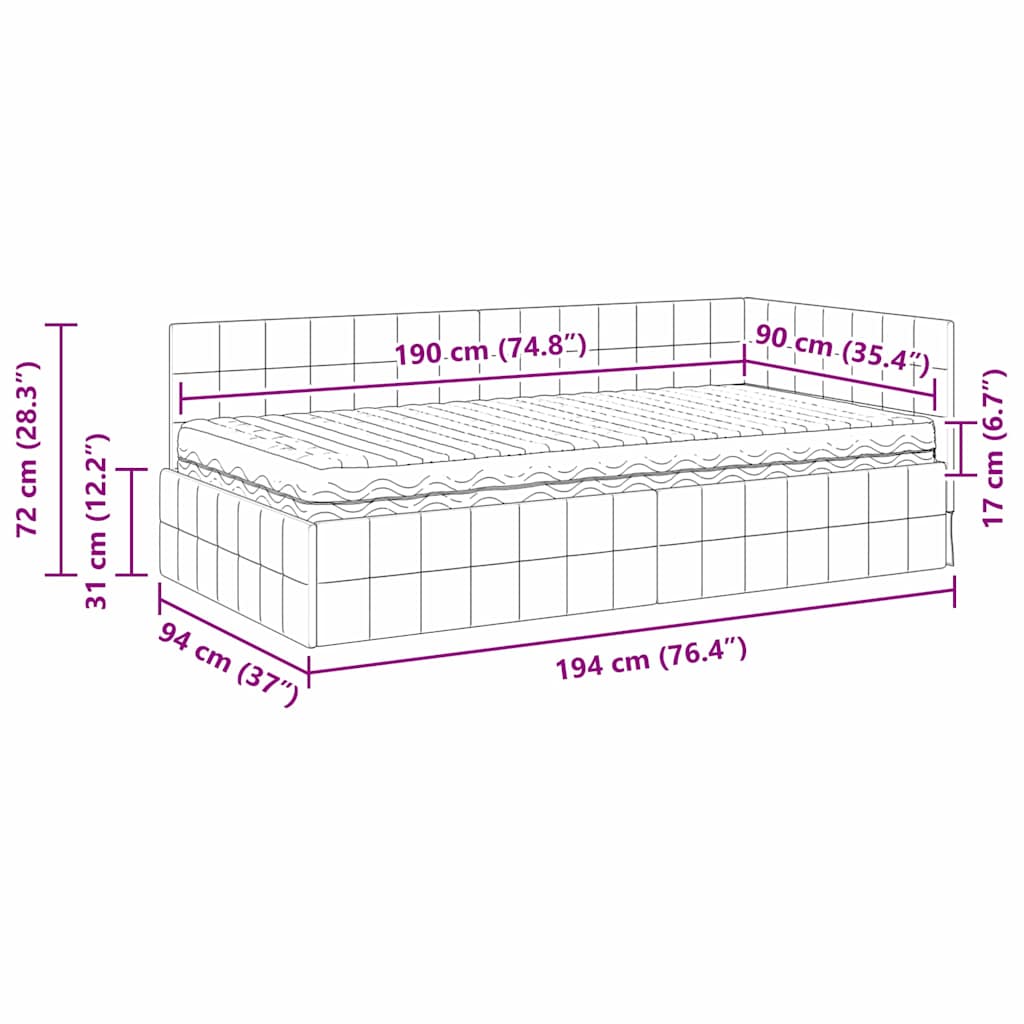 - 1 x Hoekbedframe: 194 x 94 x 72cm (LxBxH)