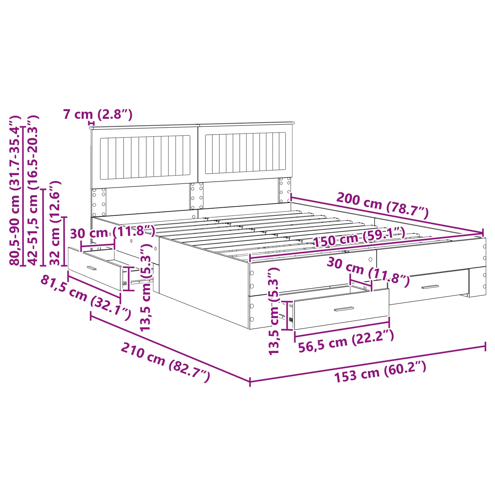 - Hoofdeinde maat: 153 x 7 x 90 Dimension_Unit (B x D x H)