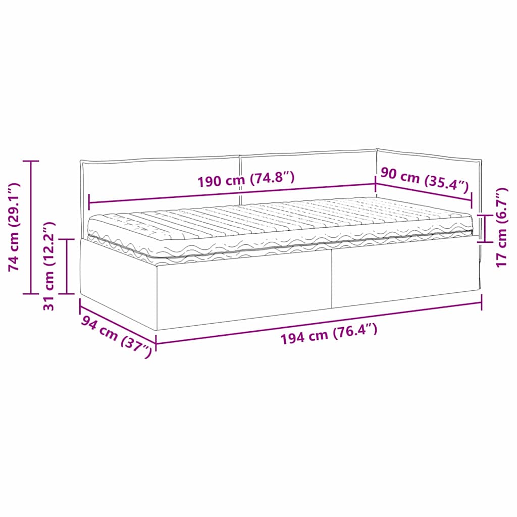 - 1 x Hoekbedframe: 204 x 94 x 74 cm (LxBxH)
