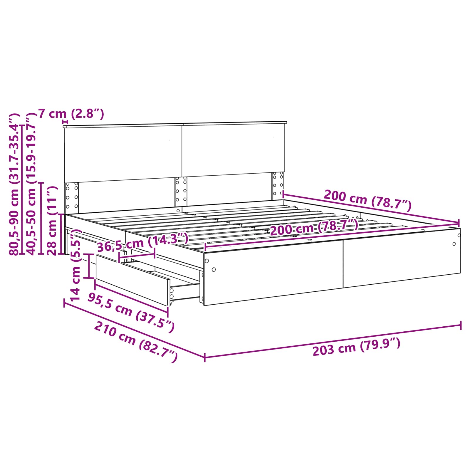 - Slimme opslag: Met lades met handgrepen helpt dit bedframe je om je slaapkamer netjes te houden. De lades zijn ook van bewerkt hout en passen perfect in het design, zodat je makkelijk spullen zoals linnen of kleding kunt opbergen.