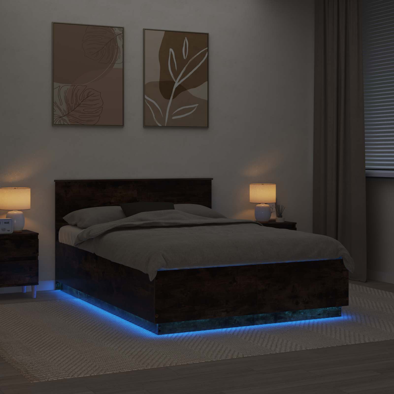 Dit moderne bedframe verandert je slaapkamer met zijn strakke en eigentijdse look. Het frame, met precisie gemaakt van bewerkt hout, heeft een schone, minimalistische uitstraling die perfect is voor elke moderne ruimte. Het is ontworpen om je slaapervaring te verbeteren, met een verstelbaar hoofdbord en rustgevende LED-verlichting voor een sfeervolle ambiance.
