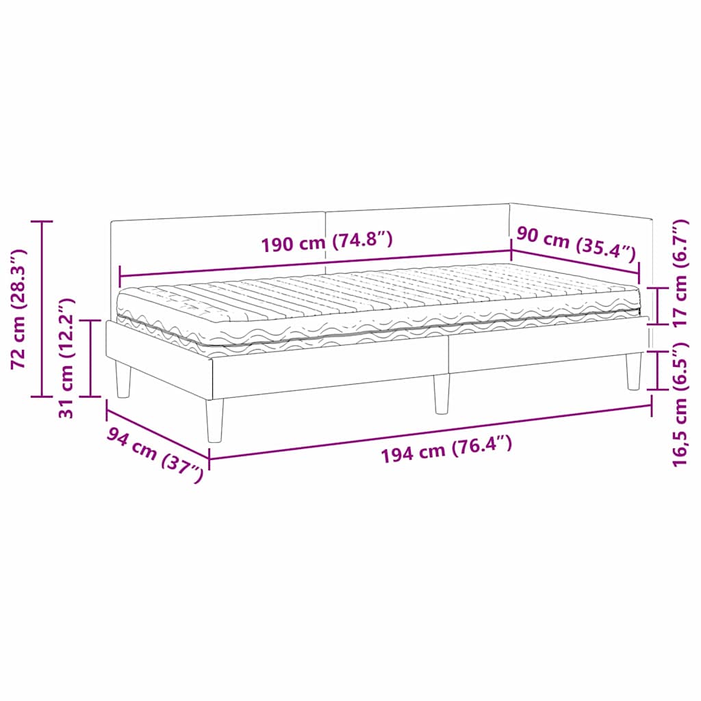 - Kort Eenpersoonsbed (90 cm x 190 cm / 35" x 75")