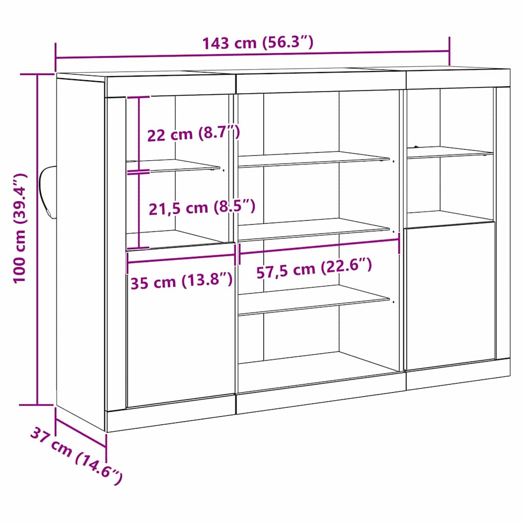 Dit moderne LED-dressoir is een praktische opslagoplossing die elke eigentijdse eetkamer of woonkamer aanvult. Met zijn rechthoekige vorm en slanke look, geeft dit dressoir je huis een boost terwijl het veel opslag biedt. De brede bovenkant en meerdere vakken maken het ideaal om verschillende spullen te ordenen. De RGB LED-strips creëren een unieke sfeer met aanpasbare kleuren die elke kamer oppimpen.