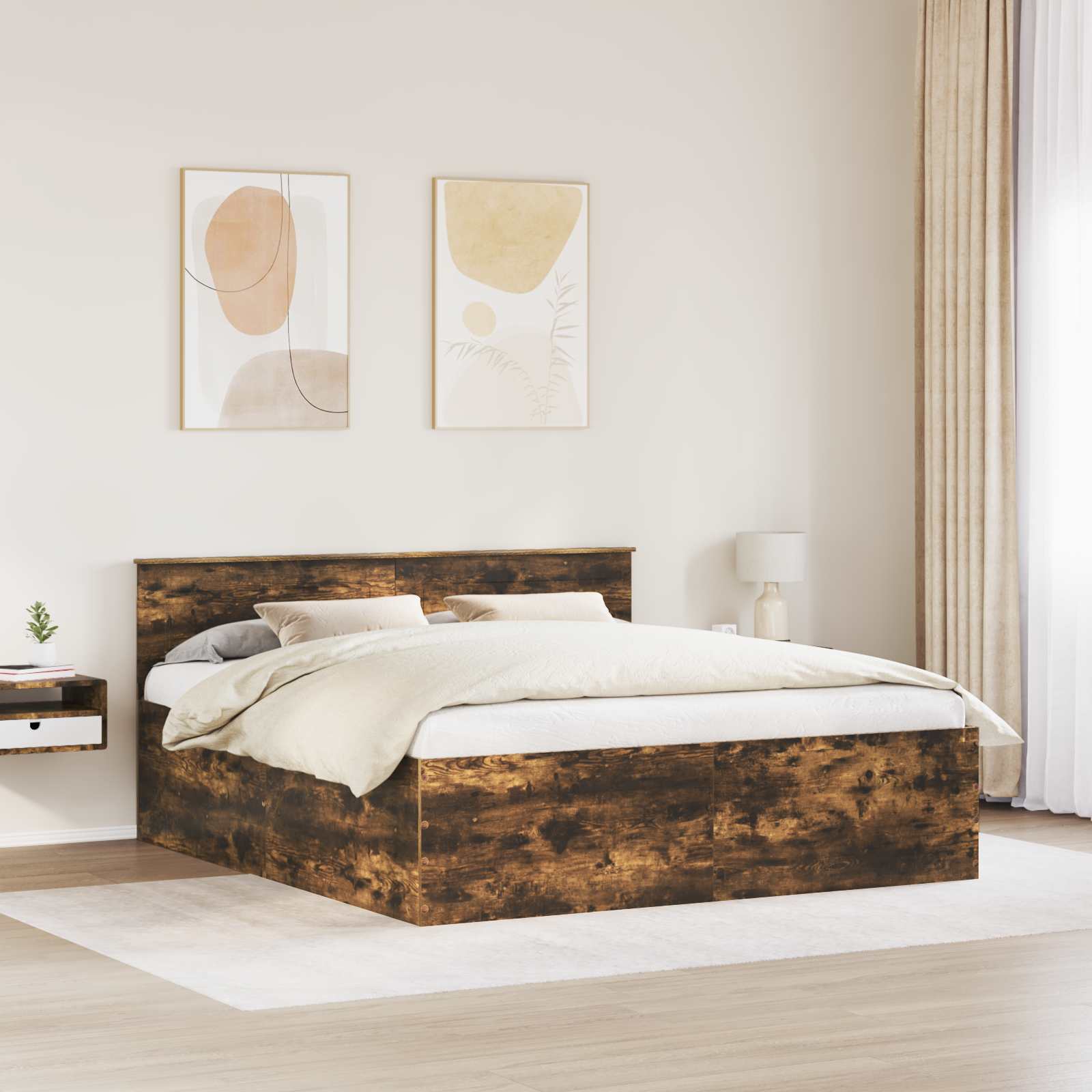 - Inbegrepen componenten: De installatie omvat een mooi ontworpen hoofdbord en een stevig bedframe, ideaal voor een moderne look. Elk onderdeel is van bewerkt hout en biedt zowel uitstraling als nuttigheid voor optimaal comfort en ondersteuning van de matras.