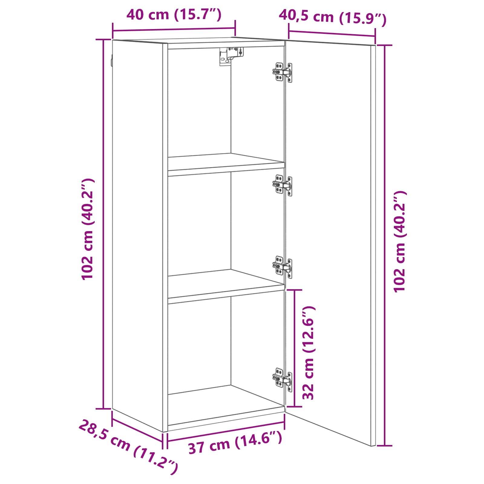 - 1 x Wandkast: 40.5 x 30 x 102 cm (LxBxH)