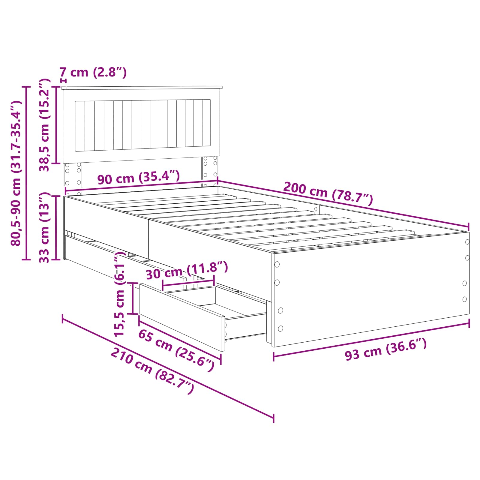 - Hoofdeinde maat: 93 x 7 x 90 cm (B x D x H)