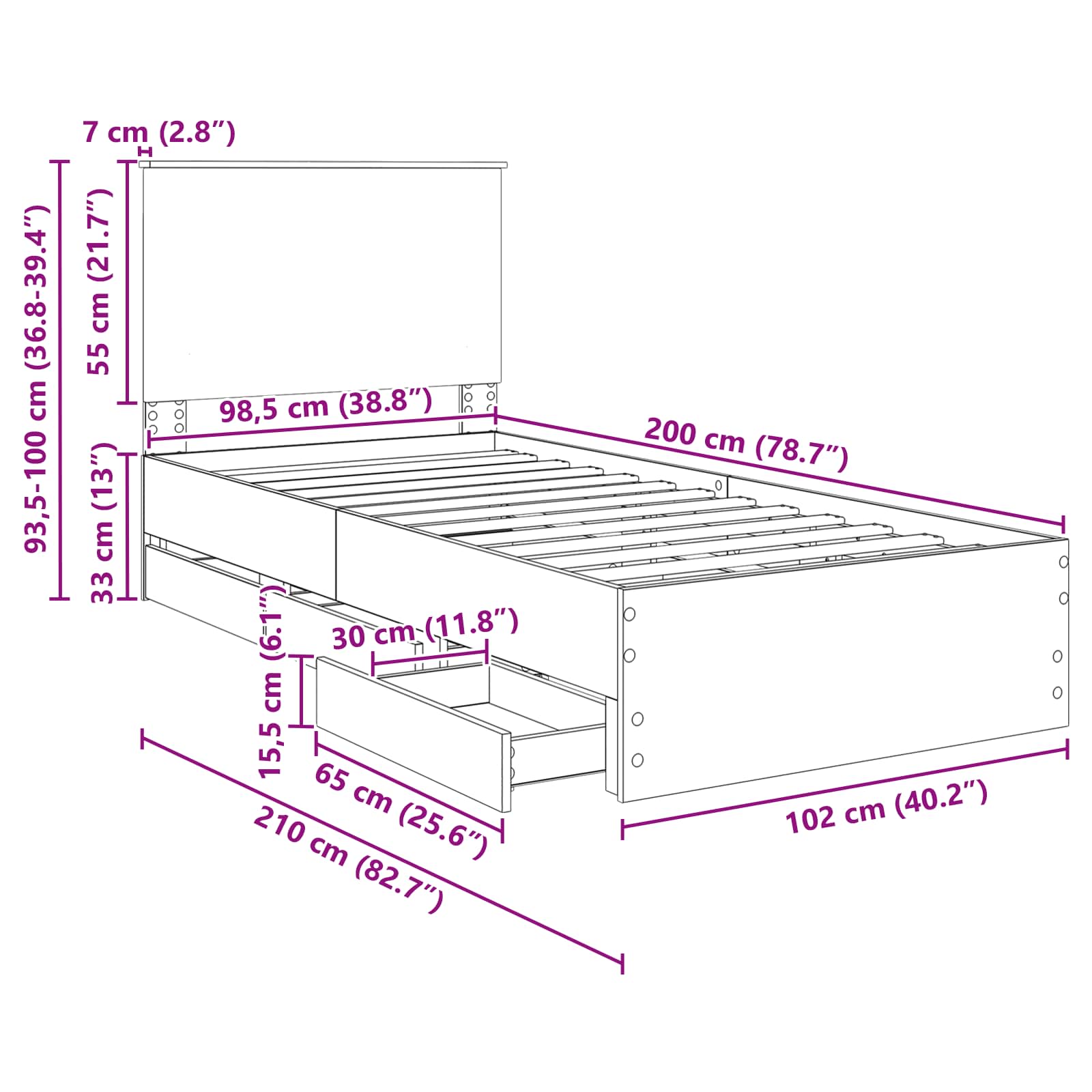 - Hoofdeinde maat: 102 x 7 x 100 cm (B x D x H)