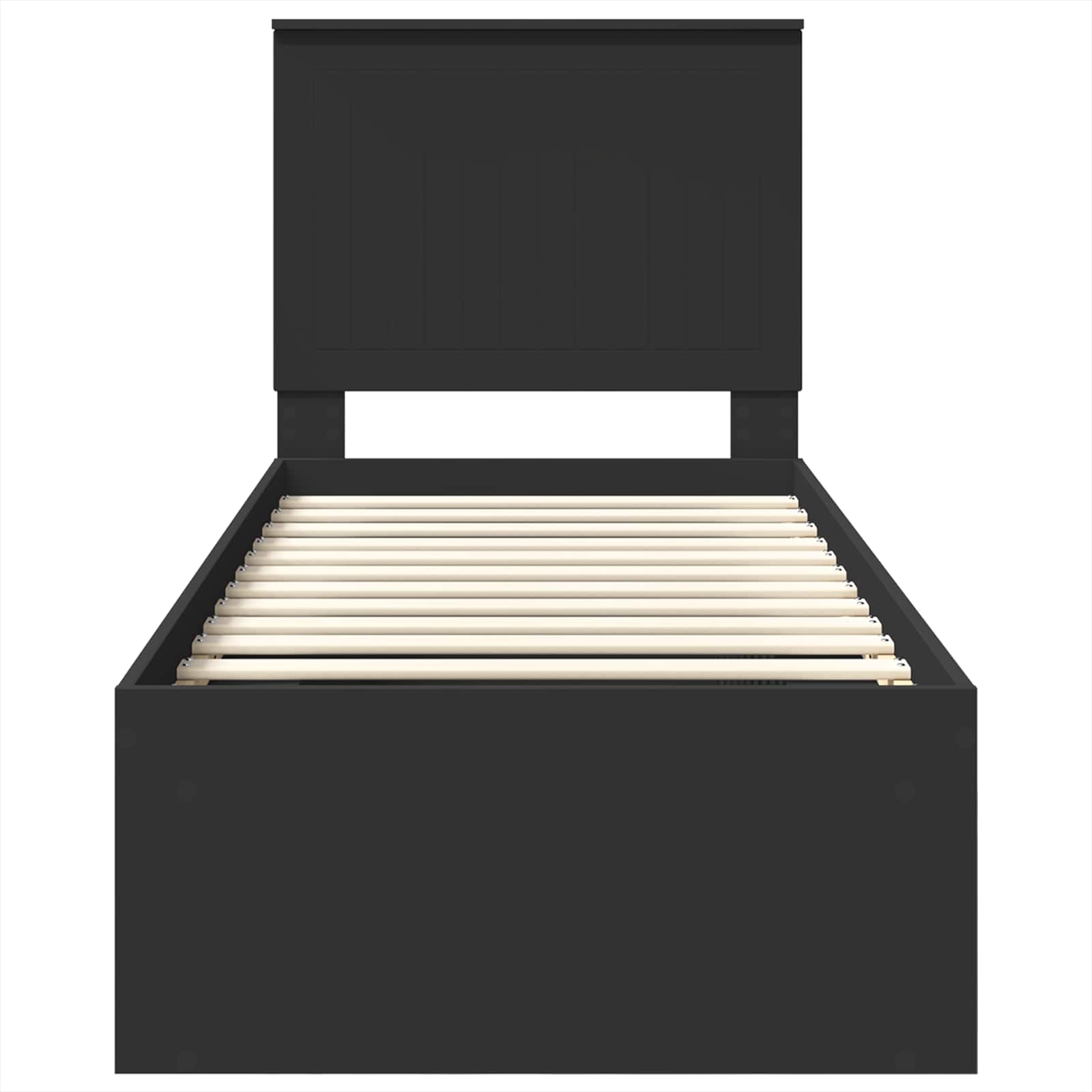 - Vaste lattenbodem: Dit bedframe is uitgerust met niet-flexibele latten, die stevige ondersteuning bieden voor je matras en ongewenste bewegingen tijdens de slaap verminderen. De latten behouden hun vorm bij regelmatig gebruik, wat zorgt voor een consistente en ongestoorde slaap. Het lattenontwerp staat luchtcirculatie toe, wat bijdraagt aan een goed geventileerd platform voor de levensduur van je matras.