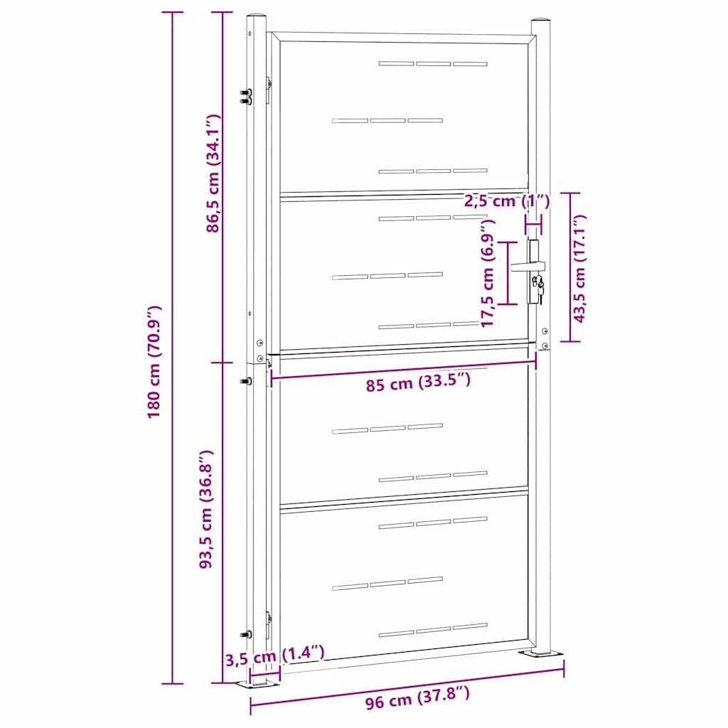 Deze rechthoekige tuinpoort van sterk roestvrijstaal biedt zowel stijl als functie in je buitenruimte. Geschikt voor tuinen en terrassen, combineert zijn moderne look strakke lijnen en weinig details, wat zorgt voor een eigentijdse uitstraling terwijl het je buitenruimte veilig afbakent. De zilveren kleur ziet er mooi uit en past makkelijk in elke tuin. Ontworpen voor de buitenlucht, weerstaat hij verschillende weersomstandigheden terwijl hij een veilige toegang of afsluiting voor je tuin biedt.
