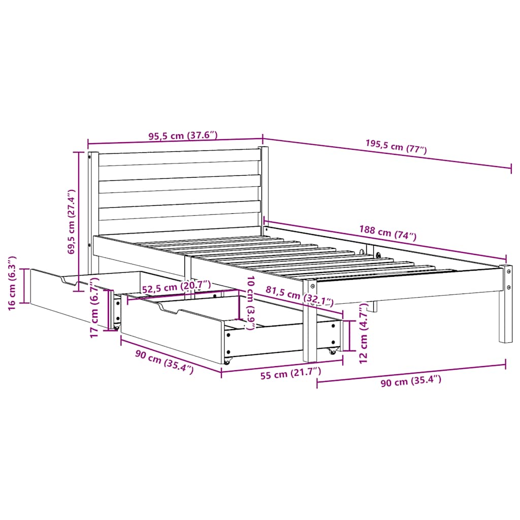 - Maak optimaal gebruik van de ruimte: dit bedframe heeft 2 lades onder het bed, die opbergruimte bieden voor spullen zoals extra beddengoed, seizoenskleding en speelgoed.