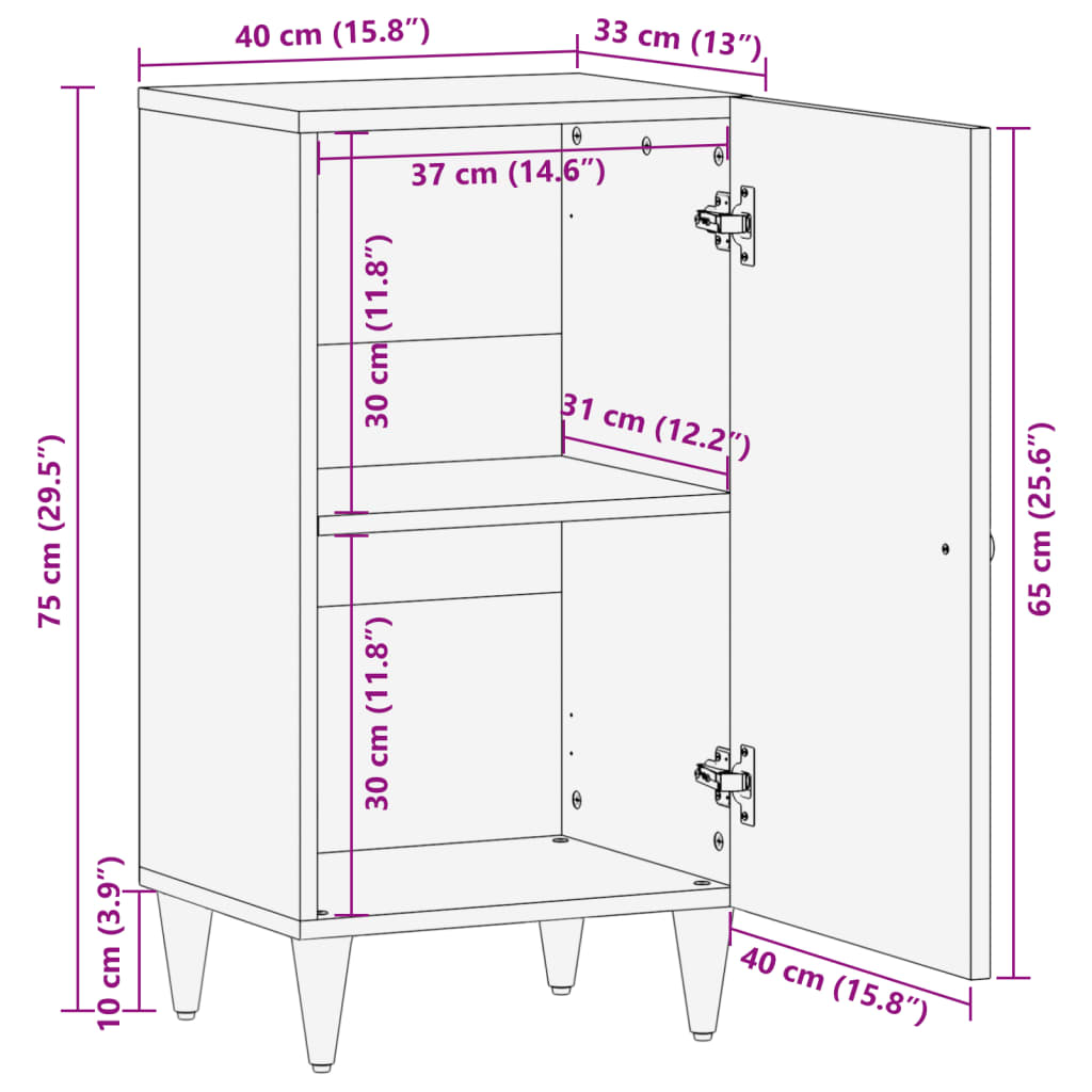 - Massief mangohout: massief mangohout is een sterk, tropisch hardhout waar stevige meubelen van gemaakt worden. De prachtige houtnerven maken elk meubelstuk net even anders dan de rest. De kast is van massief mangohout gemaakt en is duurzaam en stabiel.