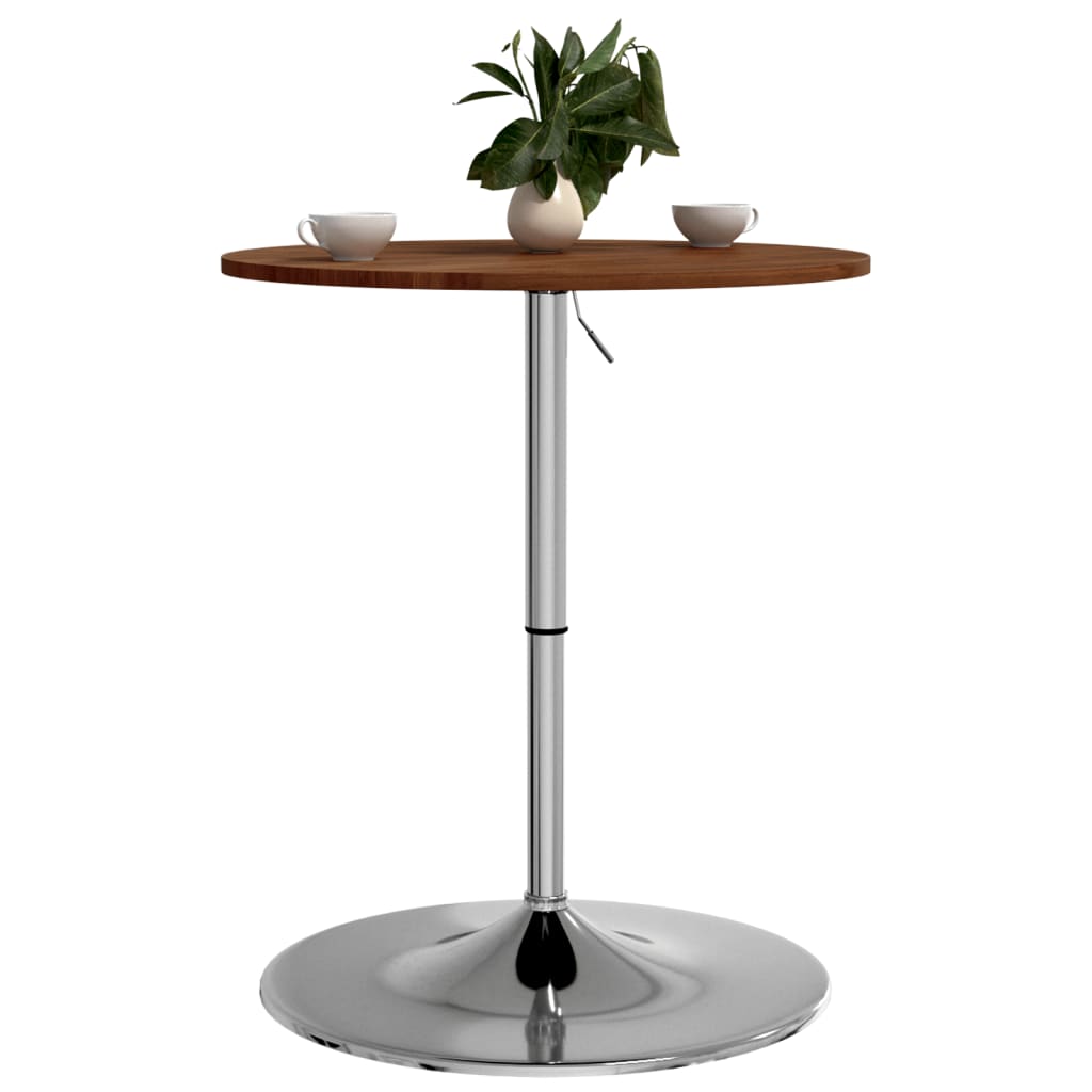 - Duurzaam materiaal: de verchroomd stalen basis biedt veel stevigheid en zorgt voor extra stabiliteit. Het tafelblad is gemaakt van massief eikenhout, een prachtig natuurlijk materiaal. Eikenhout heeft een bruine kleur en een dichte nerf, wat bijdraagt aan de unieke look.