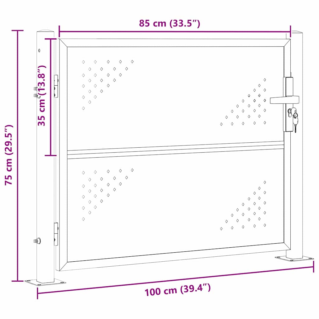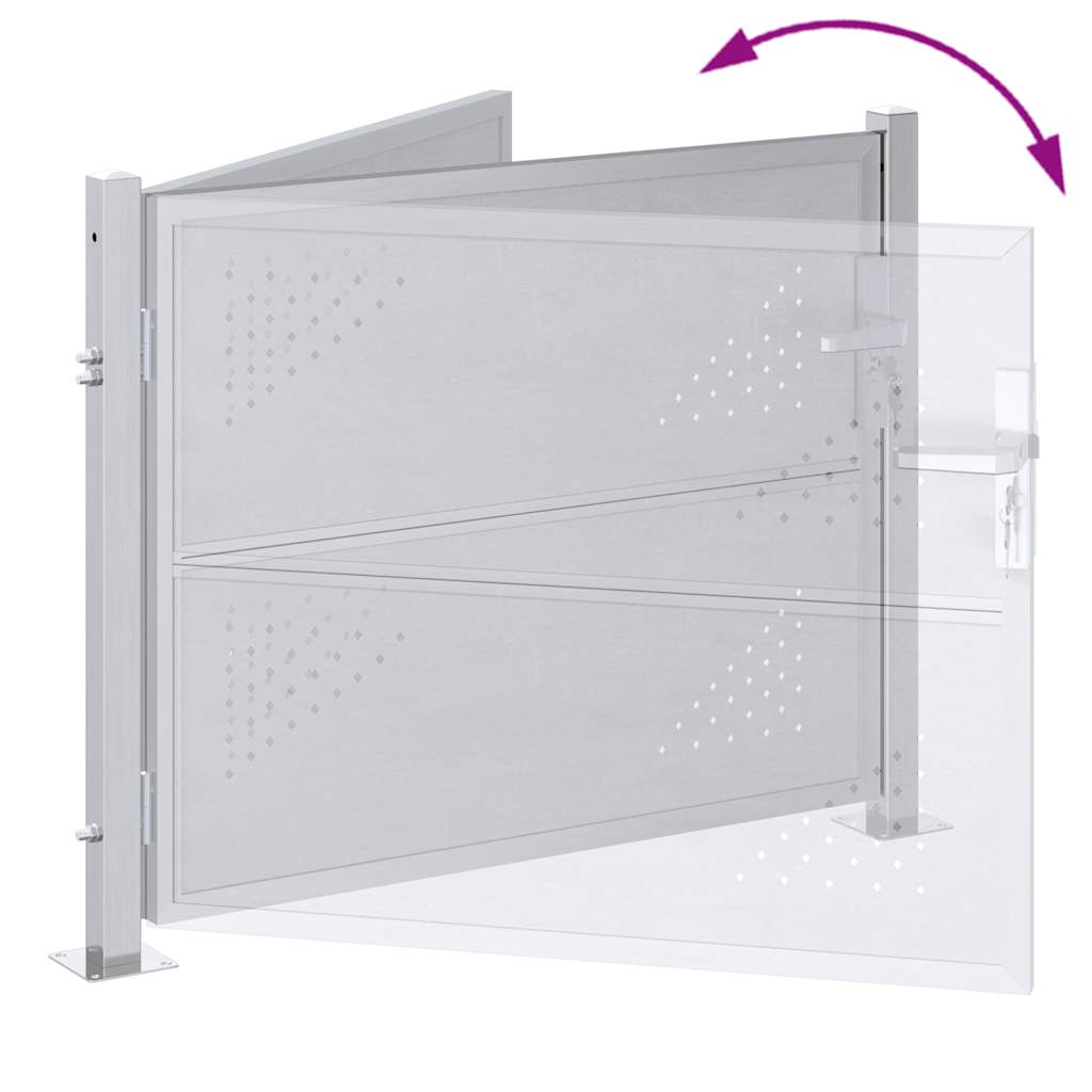 - Weerbestendig roestvrijstaal: Deze tuindeur is gemaakt van hoogwaardig roestvrijstaal, speciaal ontworpen voor buitengebruik. Hij blijft stevig staan in alle weersomstandigheden en behoudt zijn strakke, glanzende uiterlijk, ongeacht de regen of zon. Dit maakt het een duurzame investering voor je tuinomheining.
