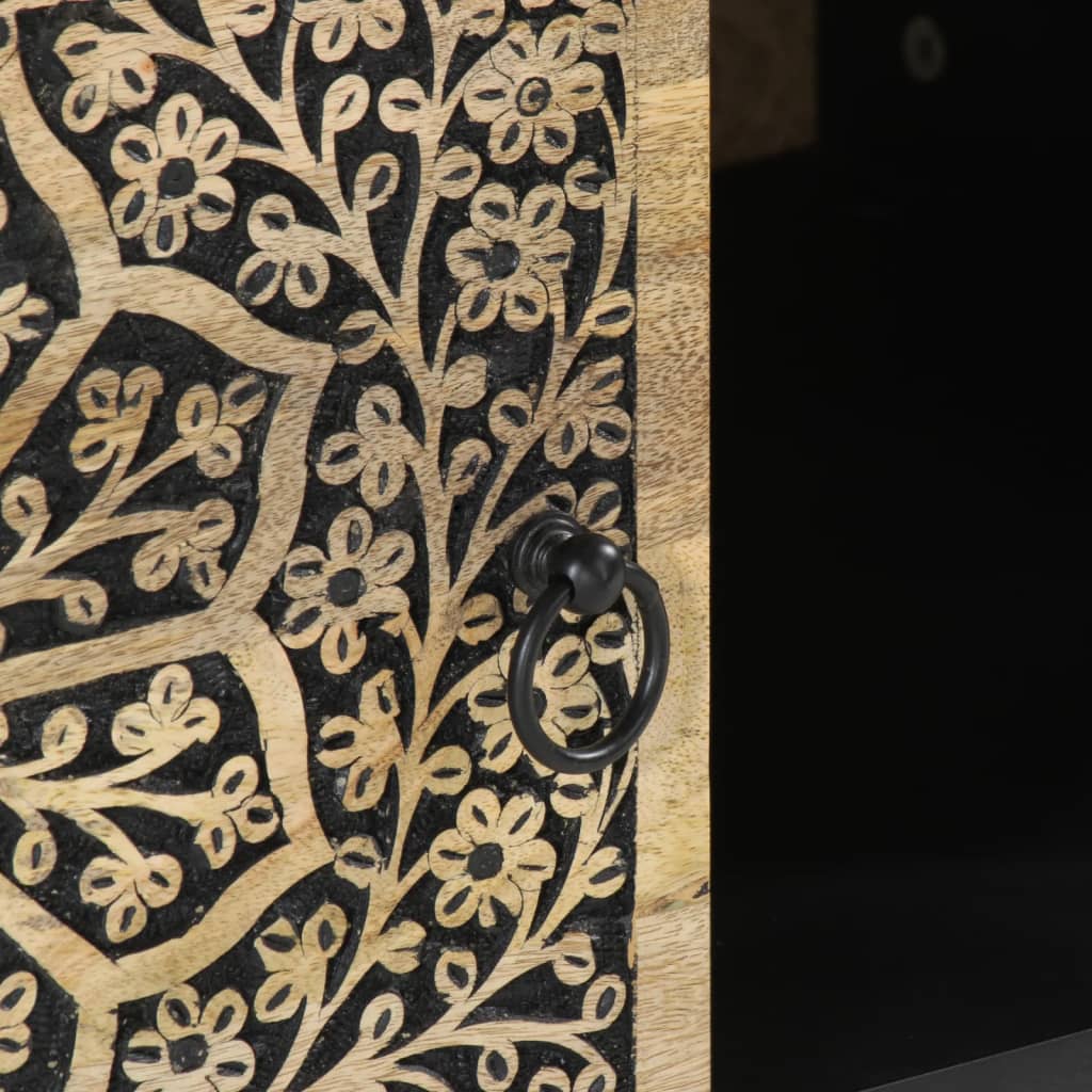- Massief mangohout: massief mangohout is een sterk, tropisch hardhout waar stevige meubelen van gemaakt worden. De prachtige houtnerven maken elk meubelstuk net even anders dan de rest. De bijzettafel is van massief mangohout gemaakt en is duurzaam en stabiel.