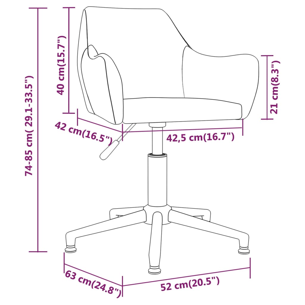 Deze kantoorstoel is bekleed met zacht fluweel en is zeer comfortabel en duurzaam. Het frame van metaal en multiplex zorgt voor stevigheid en stabiliteit. Dankzij het gasveermechanisme is de draaistoel naar wens in hoogte verstelbaar. Hij kan 360 graden draaien voor grote flexibiliteit.