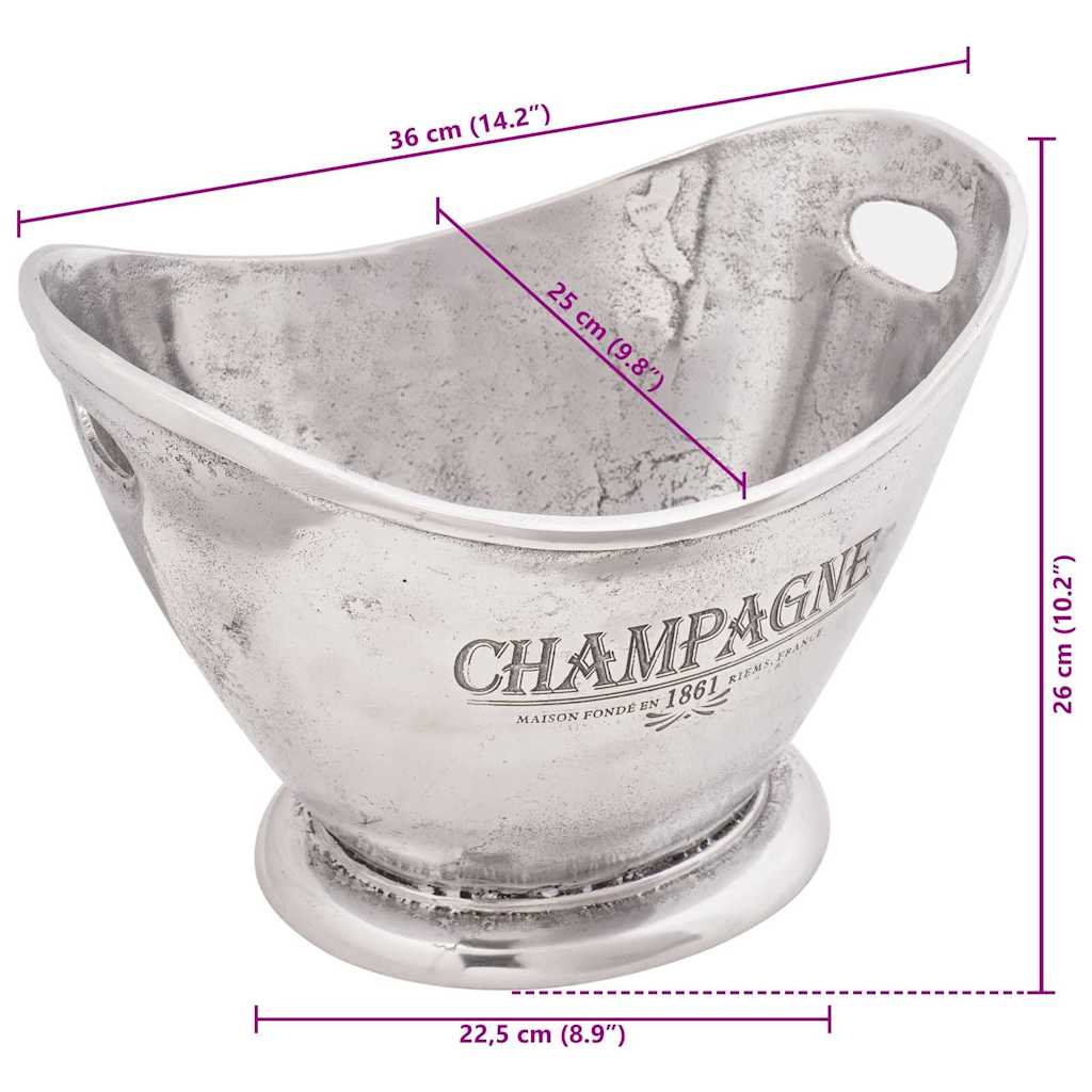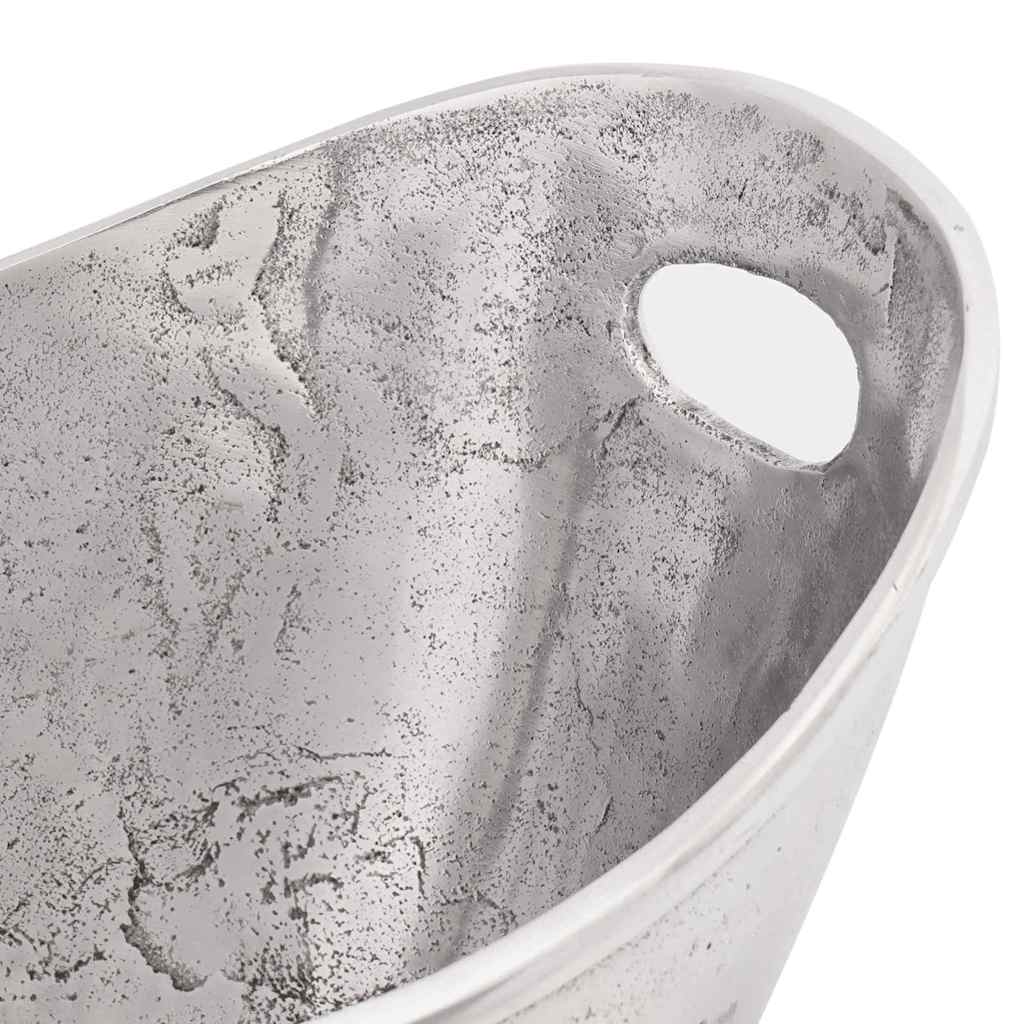 Deze ijsemmer van gepolijst aluminium straalt moderne elegantie uit en is een schitterend middelpunt voor elk binnenbijeenkomst. Het slanke, trofee-vormige ontwerp geeft een eigentijdse charme, waardoor hij goed in elke woonkamer of keuken past en de sfeer van je feestje naar een hoger niveau tilt met zijn chique uitstraling. Denk aan de urban chique, deze ijsemmer houdt niet alleen je drankjes koud, maar voegt ook iets artistieks toe aan sociale evenementen, of het nu casual of formeel is, met zijn mooie zilveren afwerking die prachtig oplicht onder verschillende lichten. Zo past hij perfect zowel in functie als in stijl.