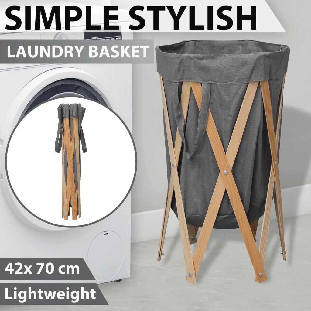 Onze wasmand heeft een sterk en stabiel houten frame met een stoffen zak. De stoffen zak is lichtgewicht, slijtvast, verwijderbaar en gemakkelijk te wassen. Het rek kan worden ingeklapt om ruimte te besparen wanneer het niet in gebruik is.