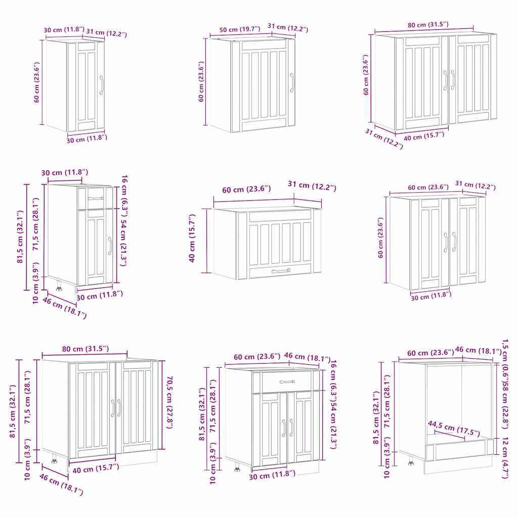 Deze 14-delige keukenkastenset met elegant design optimaliseert de ruimte in uw keuken en biedt voldoende opbergruimte voor uw persoonlijke spullen!