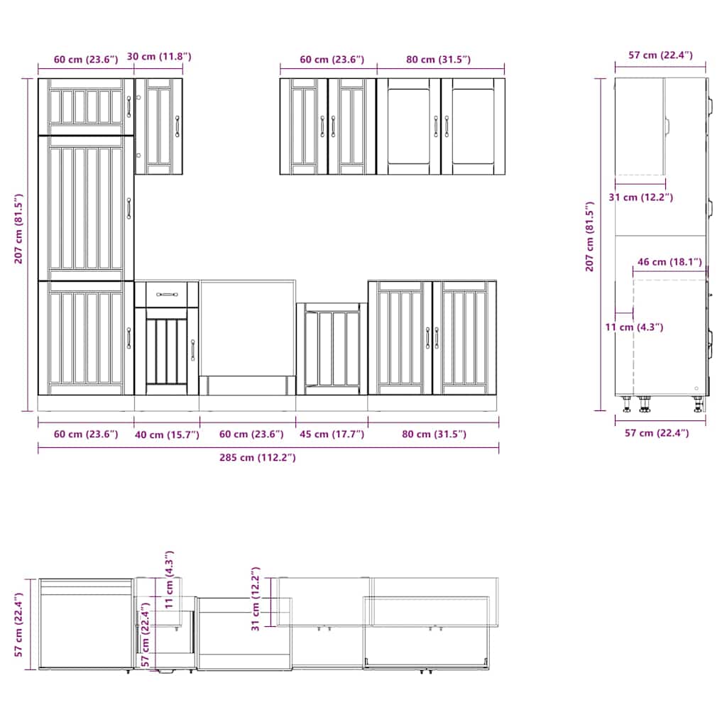 - Ruime opbergruimte: De keukenkastenset heeft veel vakken en biedt voldoende ruimte om kommen, borden, potten en andere keukenapparatuur op te bergen.
