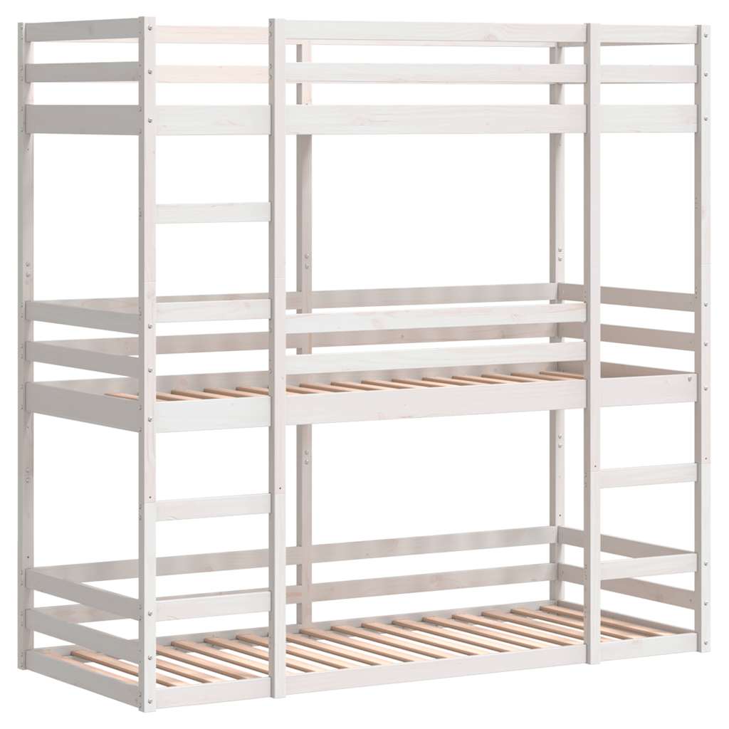 Dit houten 3-persoons stapelbed is elegant en functioneel, het is een perfecte aanvulling op elke kamer met weinig ruimte.