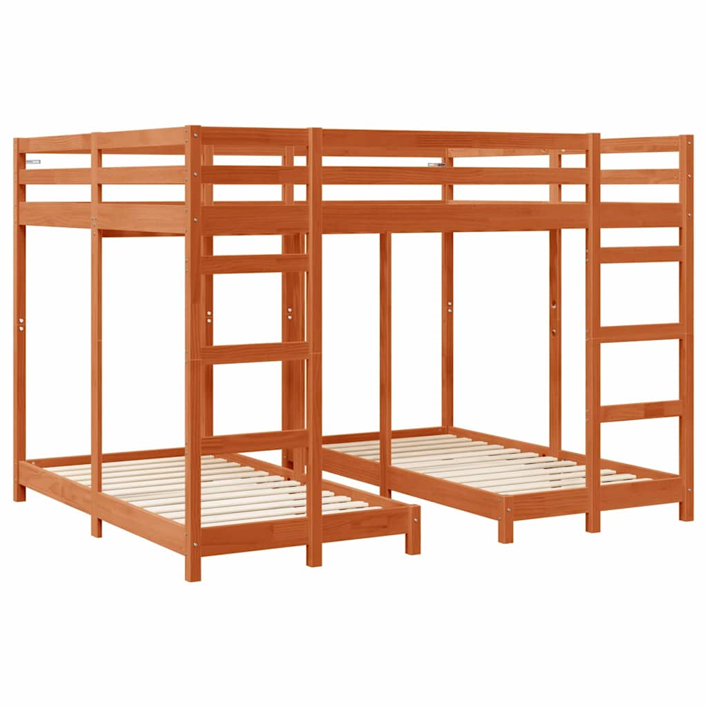 Dit stapelbedframe biedt een slimme en mooie oplossing voor gedeelde slaapkamers. Gemaakt van sterk massief grenenhout, past het perfect in huis, of je het nu in een kinderkamer of een klein appartement zet. Dankzij de robuuste bouw met een mooie houtstructuur past het bij verschillende stijlen en helpt het zo om de ruimte optimaal te benutten.