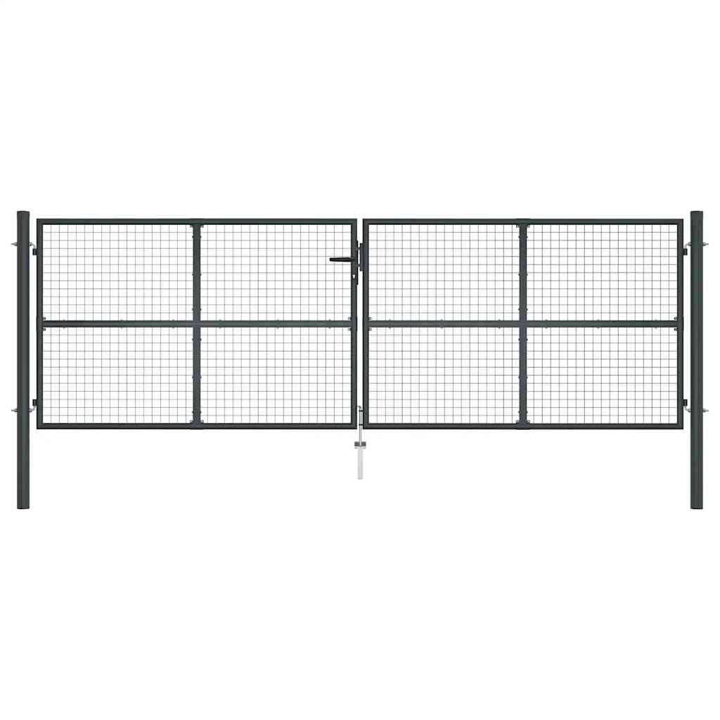 De poort is hoogwaardig afgewerkt en vervaardigd uit gegalvaniseerd staal met een gepoedercoate afwerking die roestbestendig is en een stevige constructie vormt. HIj heeft twee zijpalen met boutscharnieren, zodat je de poort eenvoudig kunt installeren. Er zit ook een grondpin bij voor de grote bodembout, zodat de poort goed afgesloten kan worden.