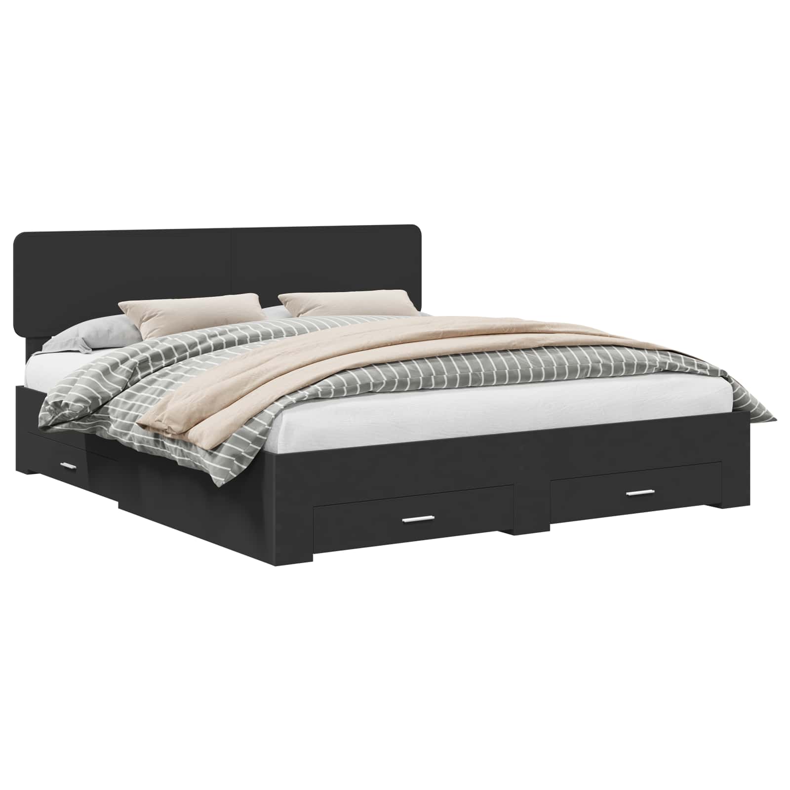 - Geïntegreerde opberglades Dit bedframe heeft handige lades die genoeg plek bieden voor beddengoed, kleding of extra kussens, zodat je slaapkamer netjes blijft zonder in te boeten op stijl.