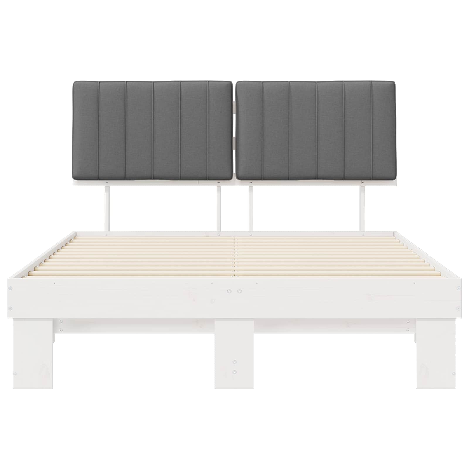 Dit houten bedframe met een gestoffeerd hoofdbord is een voorbeeld van modern ontwerp, met simpele lijnen en praktische elegantie, ideaal voor hedendaagse slaapkamers. Het massief grenenhout zorgt voor een stevige en stijlvolle basis, die rust en harmonie in de kamer brengt. De bekleding op het hoofdbord zorgt voor extra comfort en maakt het geheel aantrekkelijker.