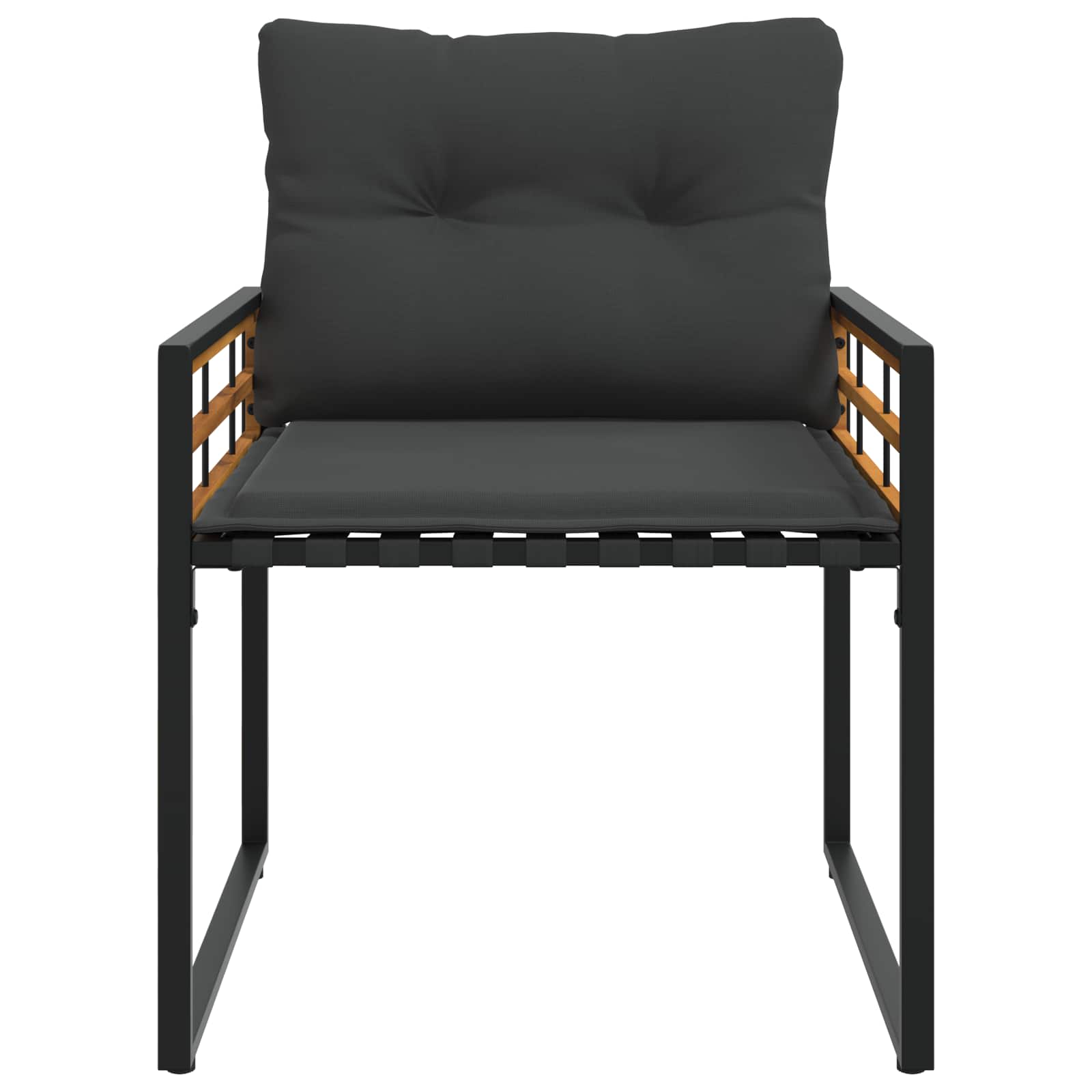 - Slimme ontwerpdetails De complete set heeft een massief acaciahouten tafelblad voor een stevige maar mooie uitstraling. Gekoppeld aan de gepoedercoat stalen rugleuning, zitting en armleuningen, zorgen alle onderdelen voor een stevig geheel. De sterke constructie maakt urenlang genieten mogelijk, of je nu gasten ontvangt of alleen ontspant.