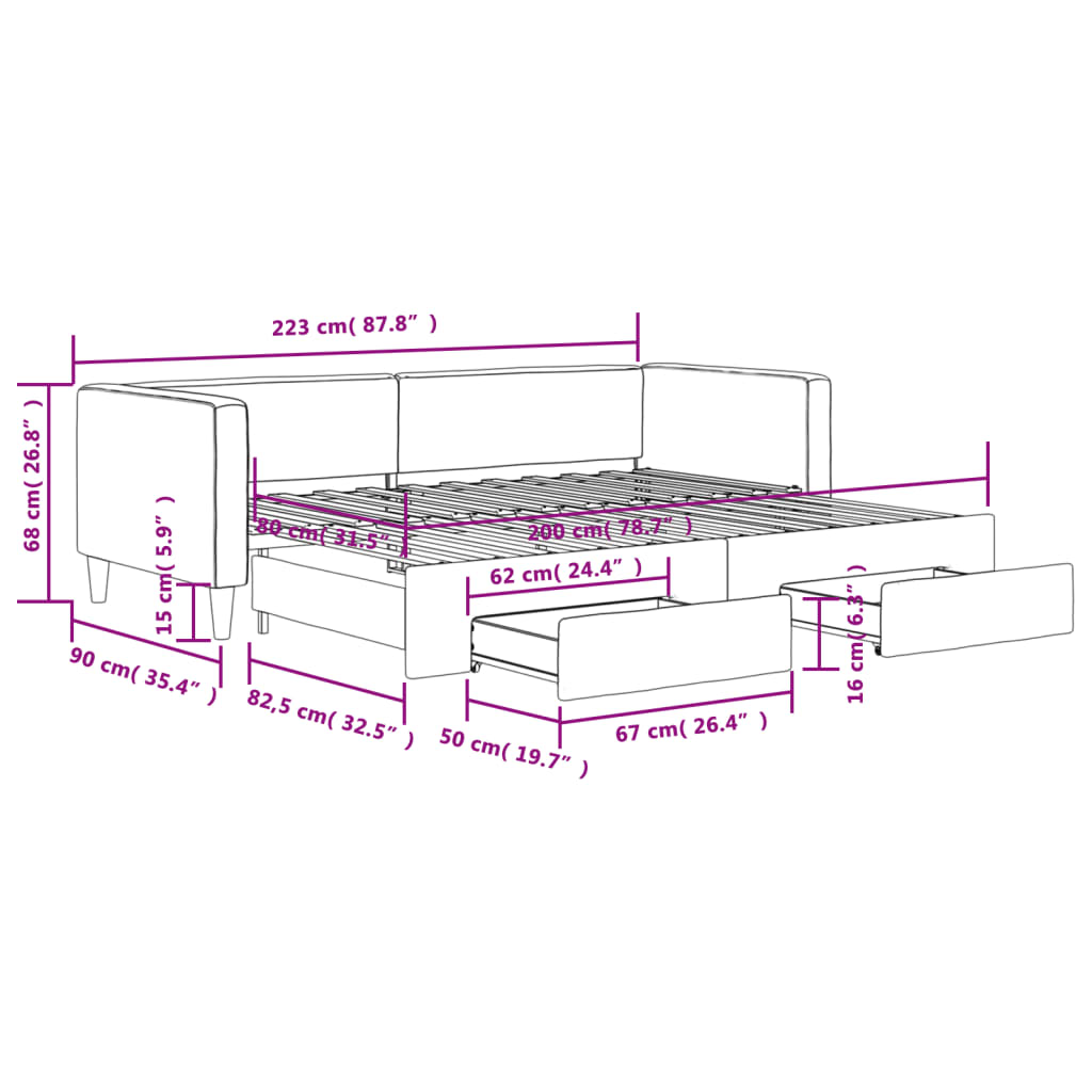 - Duurzame stof en solide constructie: deze slaapbank heeft een stevig frame van hout en metaal en is bekleed met duurzame en comfortabele stof.