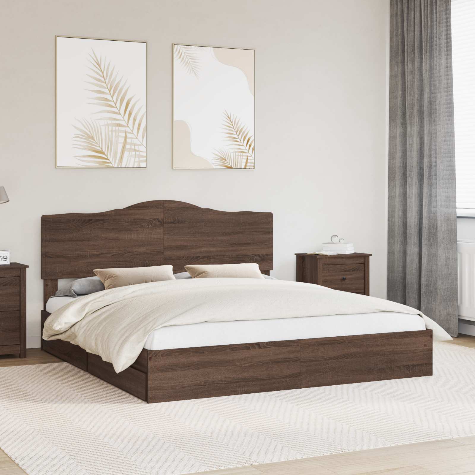 - Bewerkt hout materiaal Het bedframe, hoofdbord en de lades zijn gemaakt van hoogwaardig bewerkt hout. Dit materiaal zorgt voor een gladde afwerking die kromtrekken voorkomt, zodat het bed stevig en duurzaam blijft.