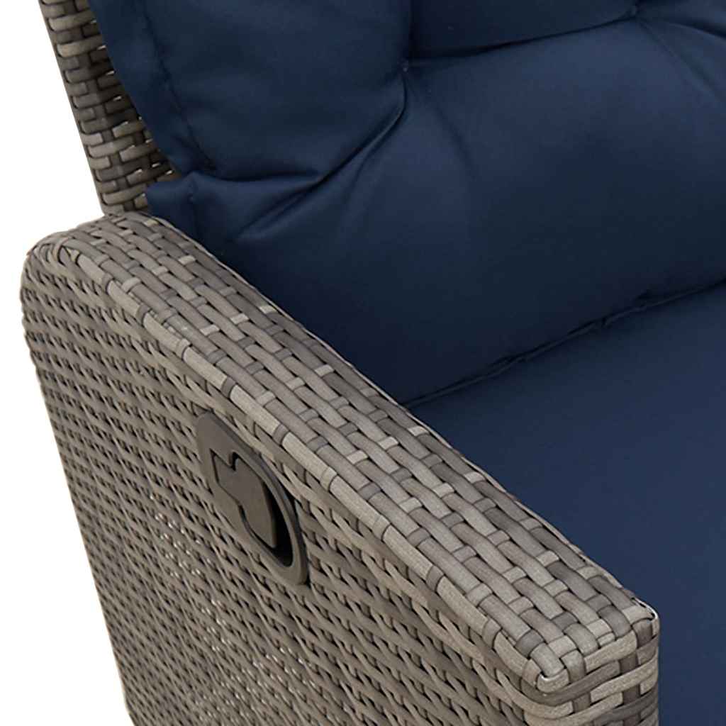 - Verstelbare rugleuning: Dit tuinmeubel heeft een handvat op elke stoel. U kunt de rugleuning in elke positie zetten door aan de hendel te trekken en deze snel terug te brengen naar zijn oorspronkelijke positie.