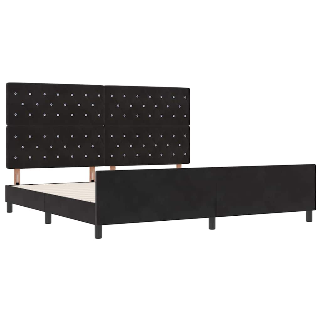 - Luxe Materialen Premium fluweel en massief grenenhout zorgen voor een verfijnde slaapomgeving. Deze combinatie maakt het sterk en biedt een zachte touch die het comfort en de elegantie verhoogt. Het mooie materiaal past perfect bij het stijlvolle ontwerp en creëert een uitnodigende sfeer in je slaapkamer.