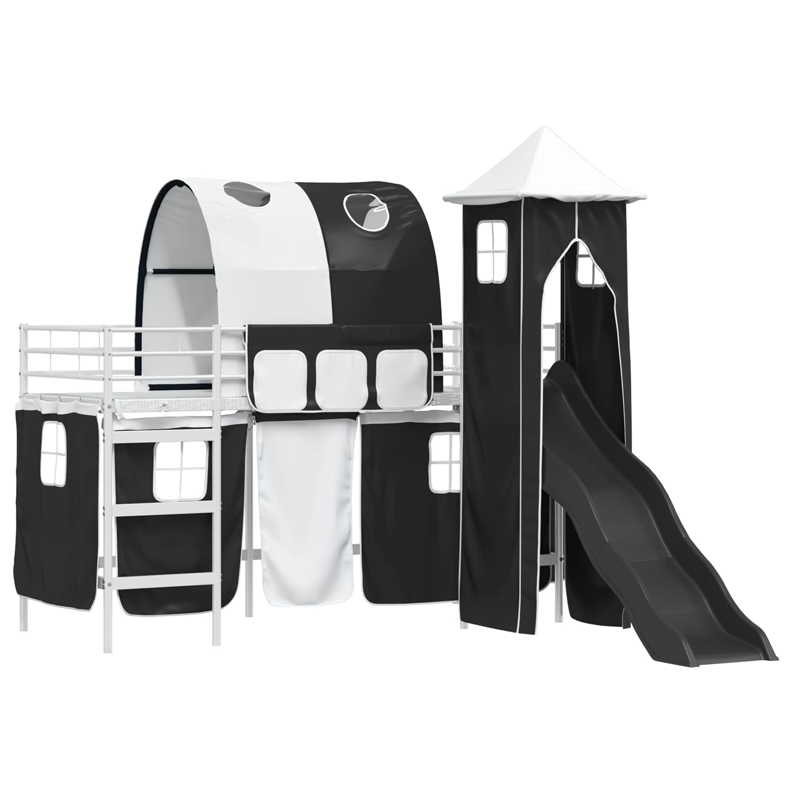 Dit moderne loftbed voor kinderen, met gordijnen, een boog, een glijbaan en een toren, is de perfecte combinatie van spannend en praktisch voor kinderkamers. Het frisse ontwerp geeft een mooie uitstraling en maakt het een echte blikvanger. Met de toren en glijbaan wordt bedtijd een avontuur. Dit bed is slim ontworpen om ruimte te optimaliseren en sluit aan bij de actieve levensstijl van kinderen. De mix van stijl en functionaliteit maakt het ideaal voor levendige kinderkamers.