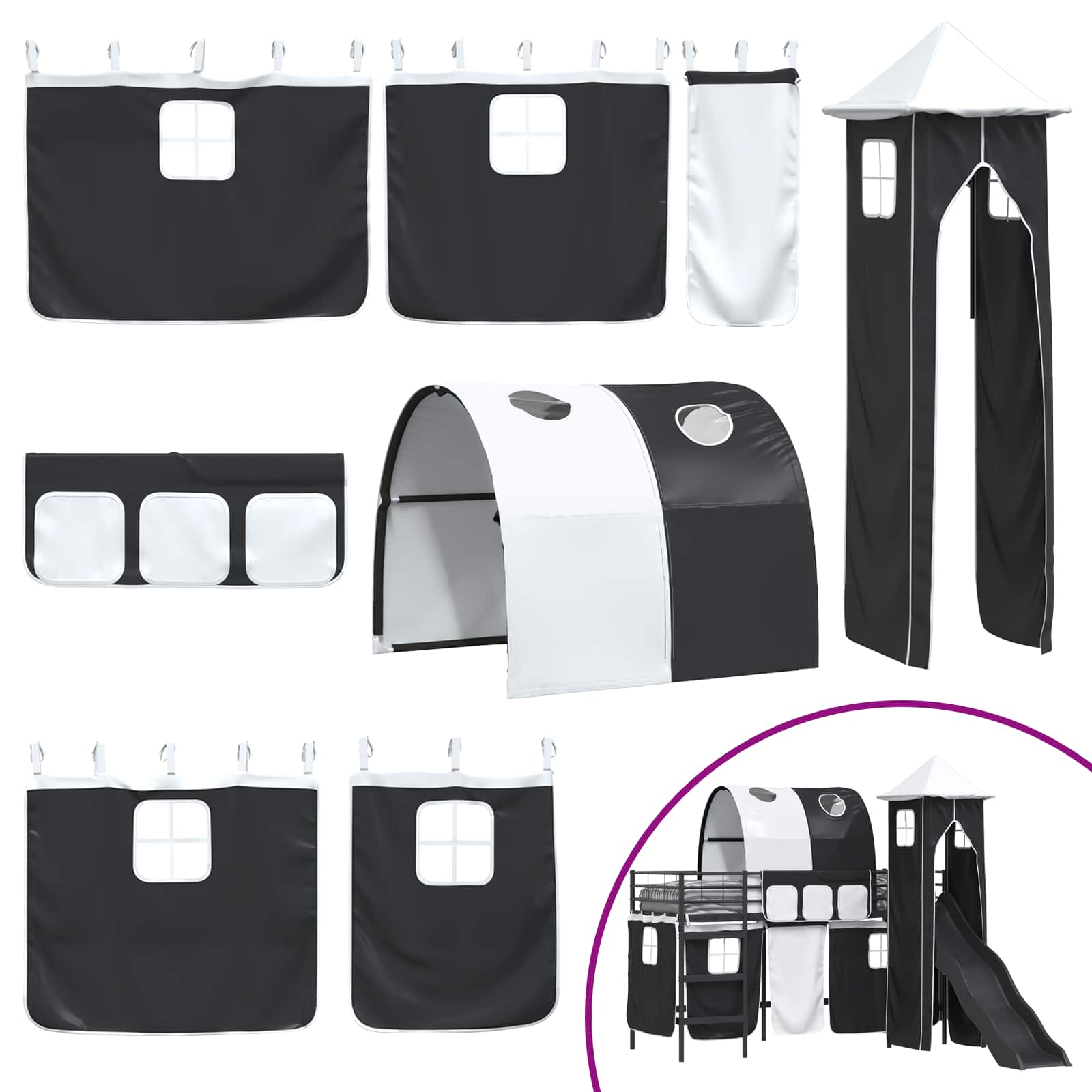 Dit moderne loftbed voor kinderen, met gordijnen, een boog, een glijbaan en een toren, is de perfecte combinatie van spannend en praktisch voor kinderkamers. Het frisse ontwerp geeft een mooie uitstraling en maakt het een echte blikvanger. Met de toren en glijbaan wordt bedtijd een avontuur. Dit bed is slim ontworpen om ruimte te optimaliseren en sluit aan bij de actieve levensstijl van kinderen. De mix van stijl en functionaliteit maakt het ideaal voor levendige kinderkamers.