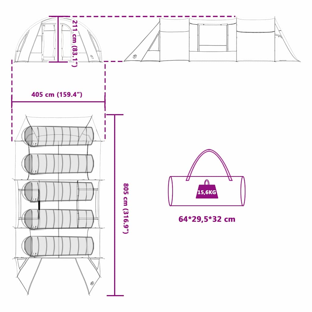 Deze moderne tunneltent is een geweldige aanvulling voor elk buitenavontuur, ontworpen voor comfort en gebruiksgemak tijdens de zomer. Met een strakke vormgeving en een ruime binnenruimte, biedt het ergonomische elementen die perfect zijn voor langere kampeertochten. Gemaakt van 185T polyester met een PU-coating, zorgt deze tent ervoor dat je goed beschermd bent tegen de elementen. Dit maakt het de ideale plek om te genieten, of je nu in je tuin, op je terras of op een kampeerplek bent.