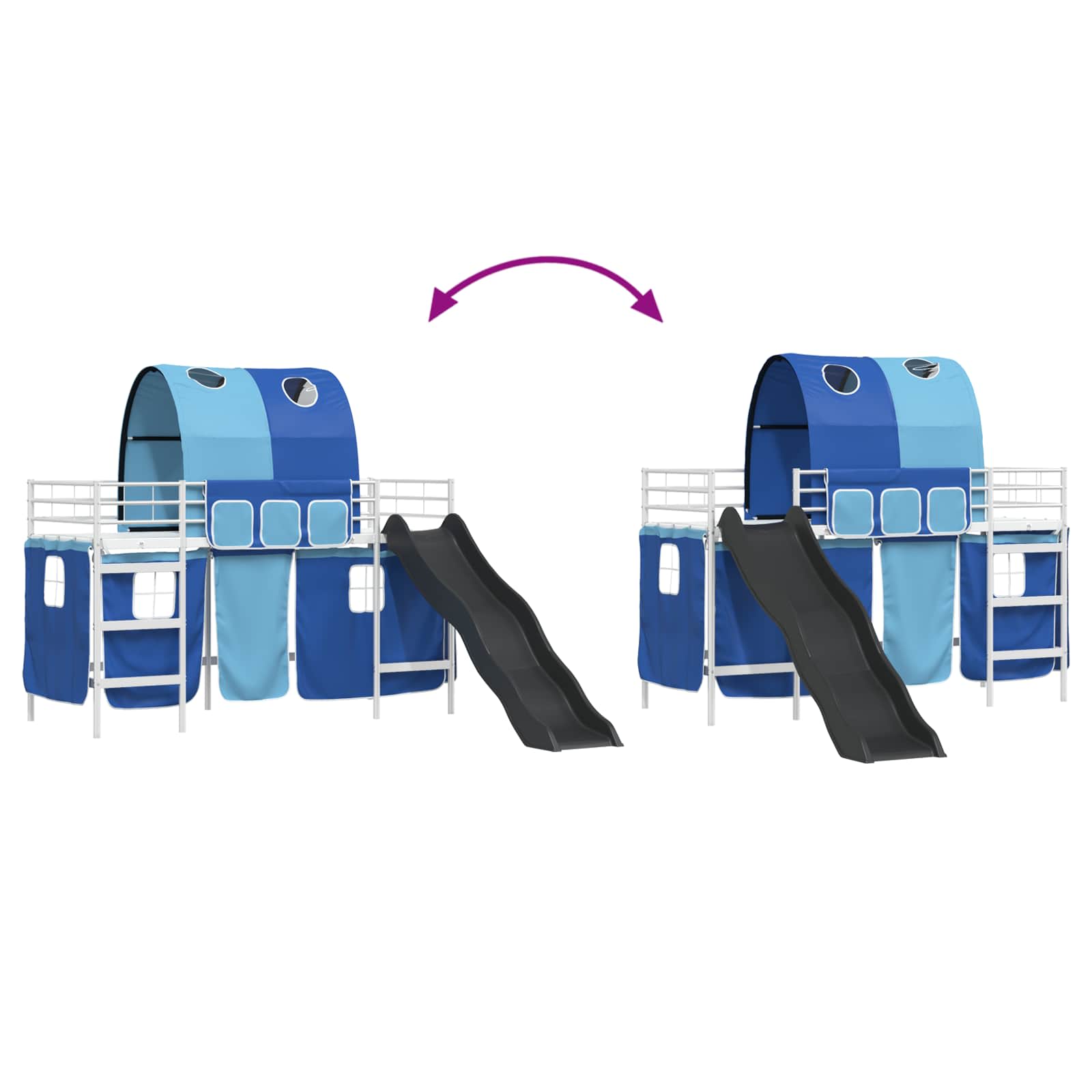 Dit stapelbedframe voor kinderen komt met gordijnen, een boog en een glijbaan, en is ontworpen om plezier te combineren met functionaliteit. Het biedt een geweldige slaapplek waar kleine avonturiers dol op zullen zijn. Dit rechthoekige frame heeft een strakke en moderne uitstraling, die perfect in elke slaapkamer of kinderkamer past. Met duurzame materialen en een speelse glijbaan, plus aanpasbare gordijnen, creëer je een gezellige omgeving voor zowel chillen als spelen. De zwart-blauwe kleuren geven een coole vibe aan elke ruimte, waardoor het zowel praktisch als spannend is.