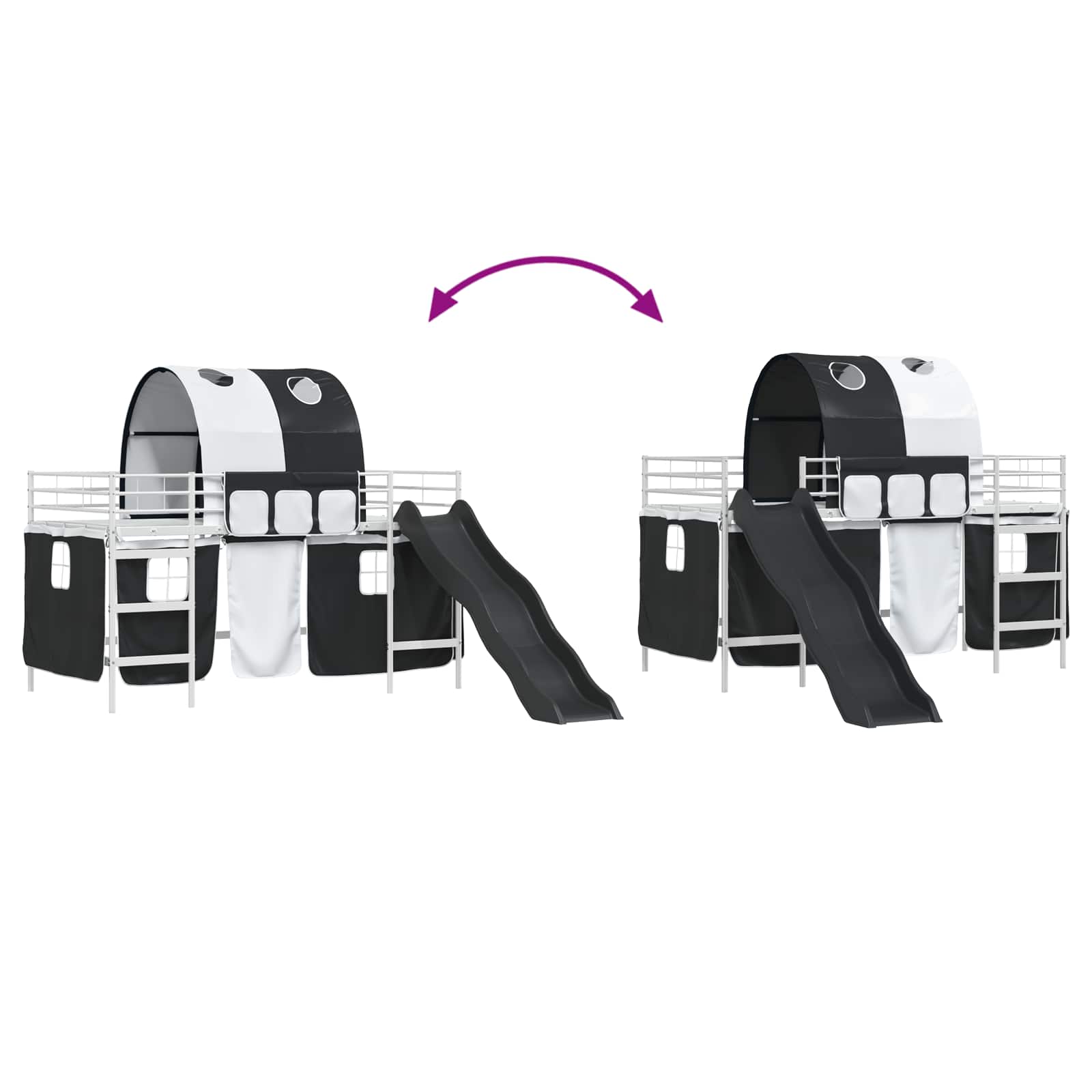 Dit stapelbedframe voor kinderen komt met gordijnen, een boog en een glijbaan, en is ontworpen om plezier te combineren met functionaliteit. Het biedt een geweldige slaapplek waar kleine avonturiers dol op zullen zijn. Dit rechthoekige frame heeft een strakke en moderne uitstraling, die perfect in elke slaapkamer of kinderkamer past. Met duurzame materialen en een speelse glijbaan, plus aanpasbare gordijnen, creëer je een gezellige omgeving voor zowel chillen als spelen. De zwart-blauwe kleuren geven een coole vibe aan elke ruimte, waardoor het zowel praktisch als spannend is.