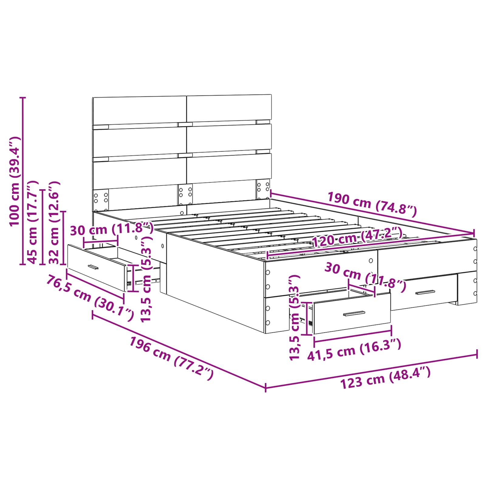 - Totale afmetingen: 190 x 123 x 100 cm (L x B x H)