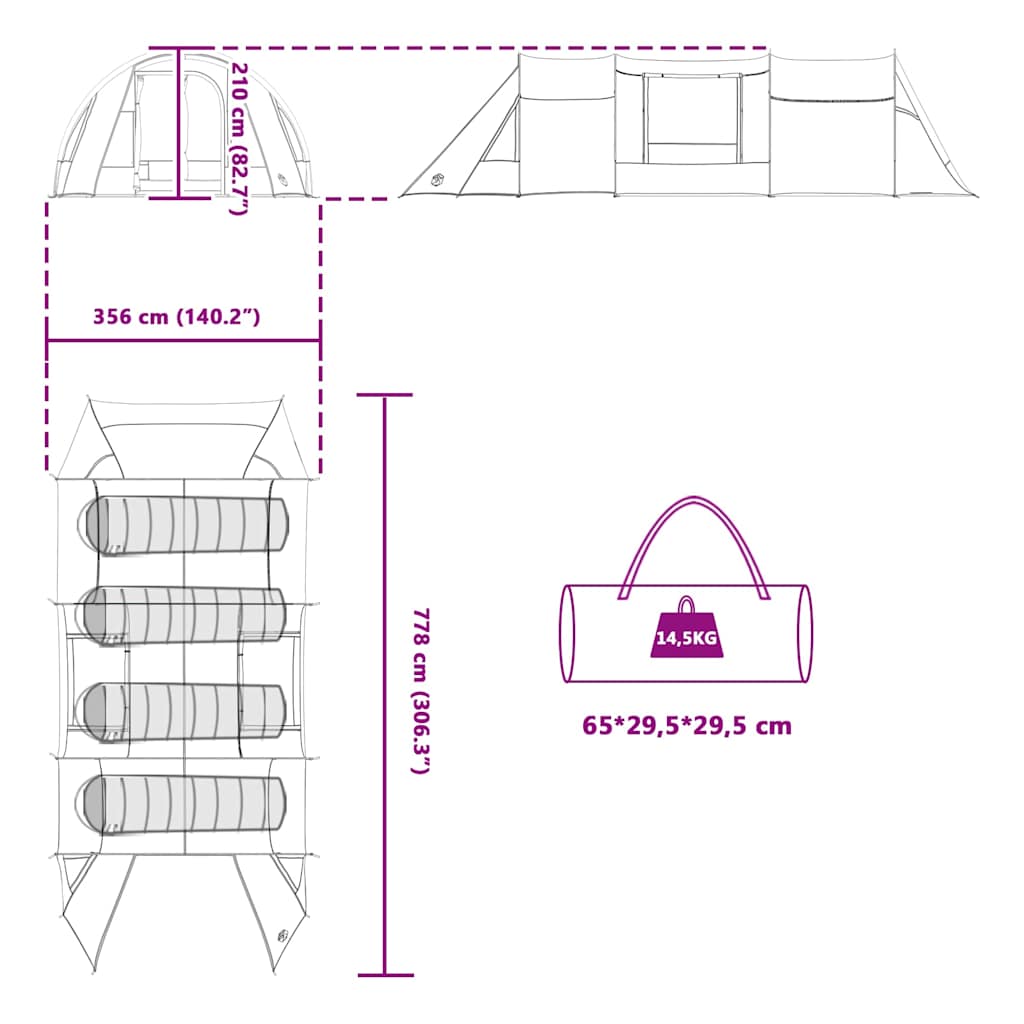 - Inclusief componenten: Je krijgt de tent met een luifel, set palen, draagtas, 8 scheerlijnen en 24 grondpennen. Elk onderdeel draagt bij aan de stabiliteit en het gebruiksgemak, van de stevige constructie tot snelle opstelling en afbraak op elk kampeerterrein.